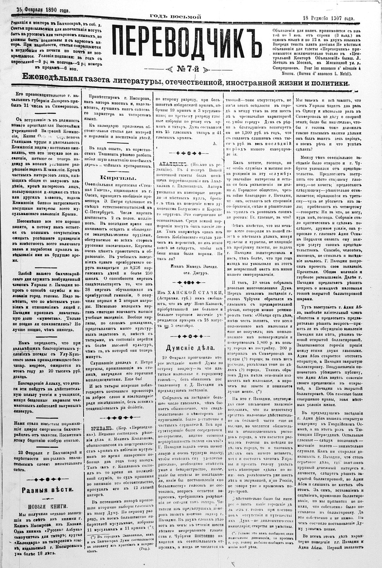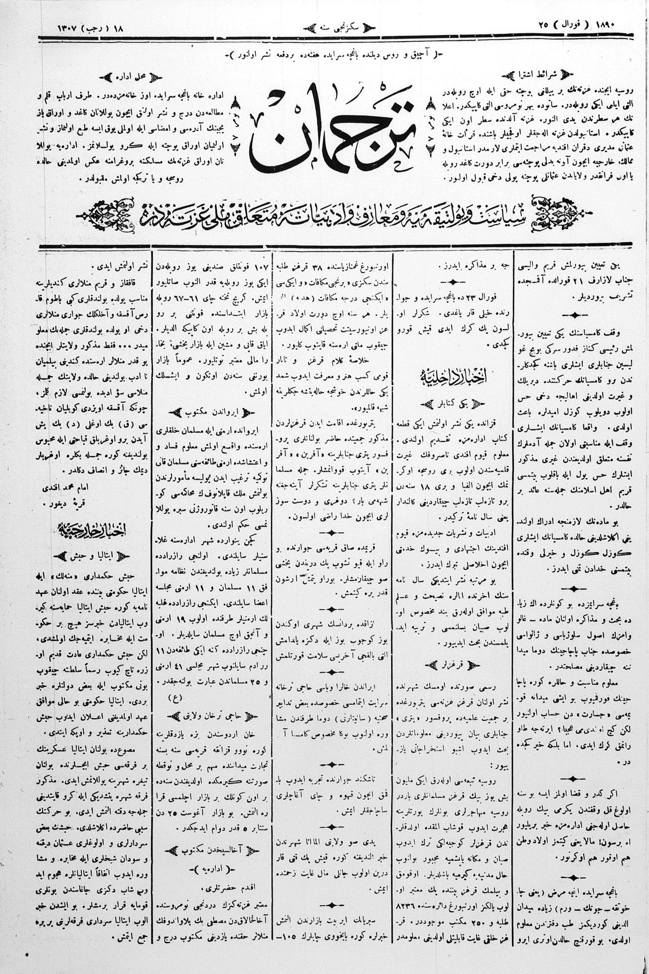 Tercüman, 25 February 1890 Year 8 No 7