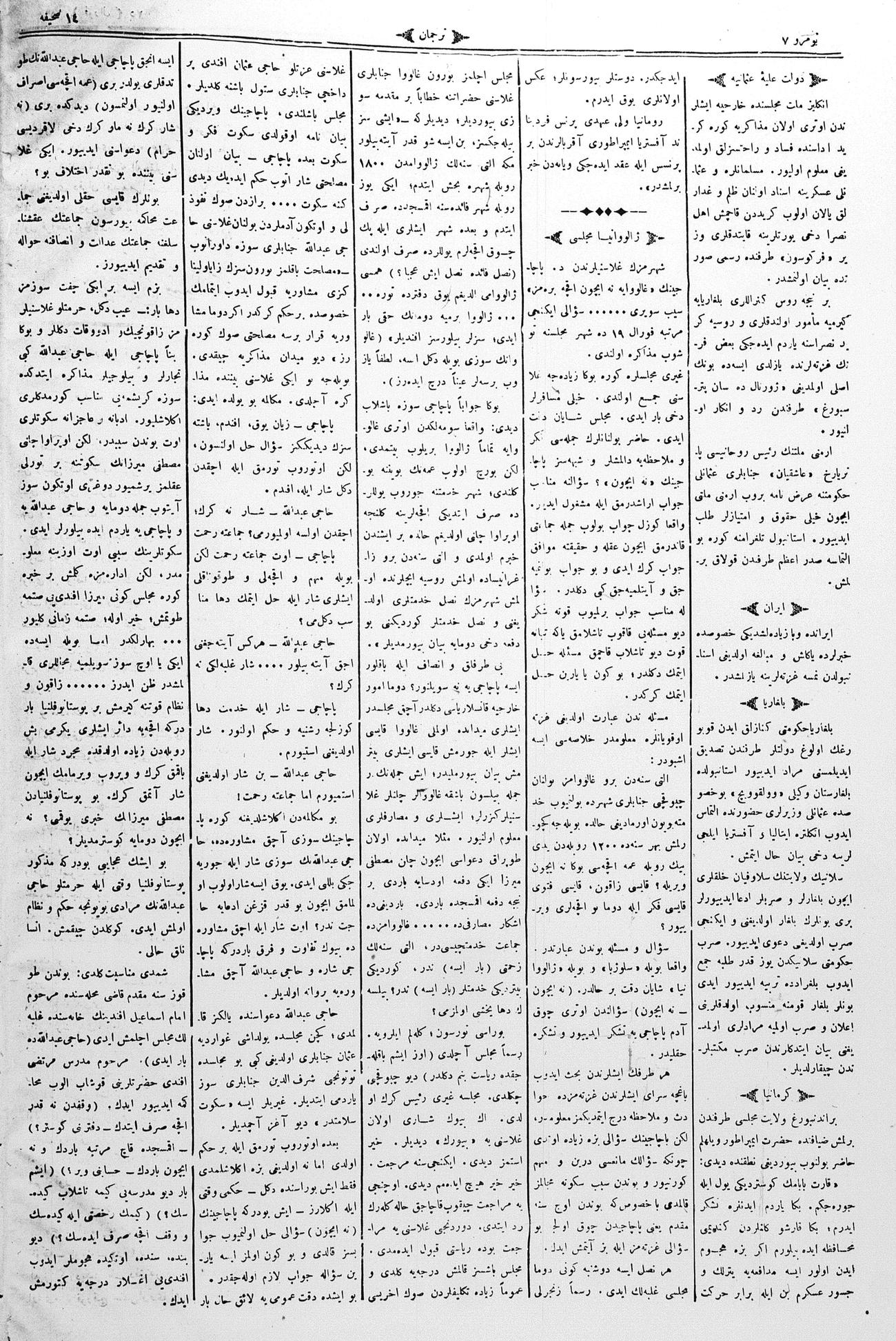 The name of the newspaper changed to Tercüman-ı Ahval-i Zaman in 1905. In 1909, it started to be published under its first name, Tercüman.