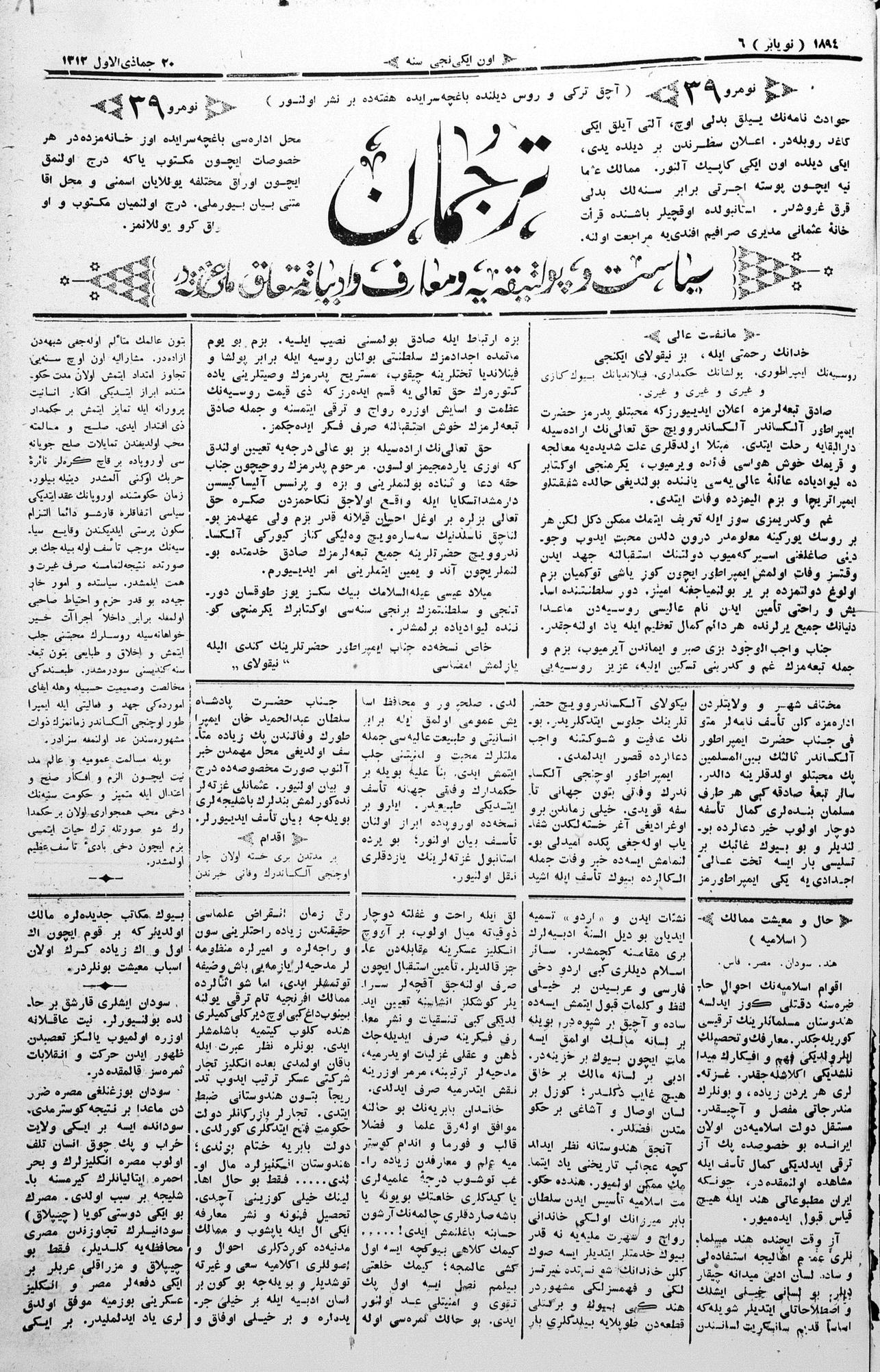 The name of the newspaper changed to Tercüman-ı Ahval-i Zaman in 1905. In 1909, it started to be published under its first name, Tercüman.