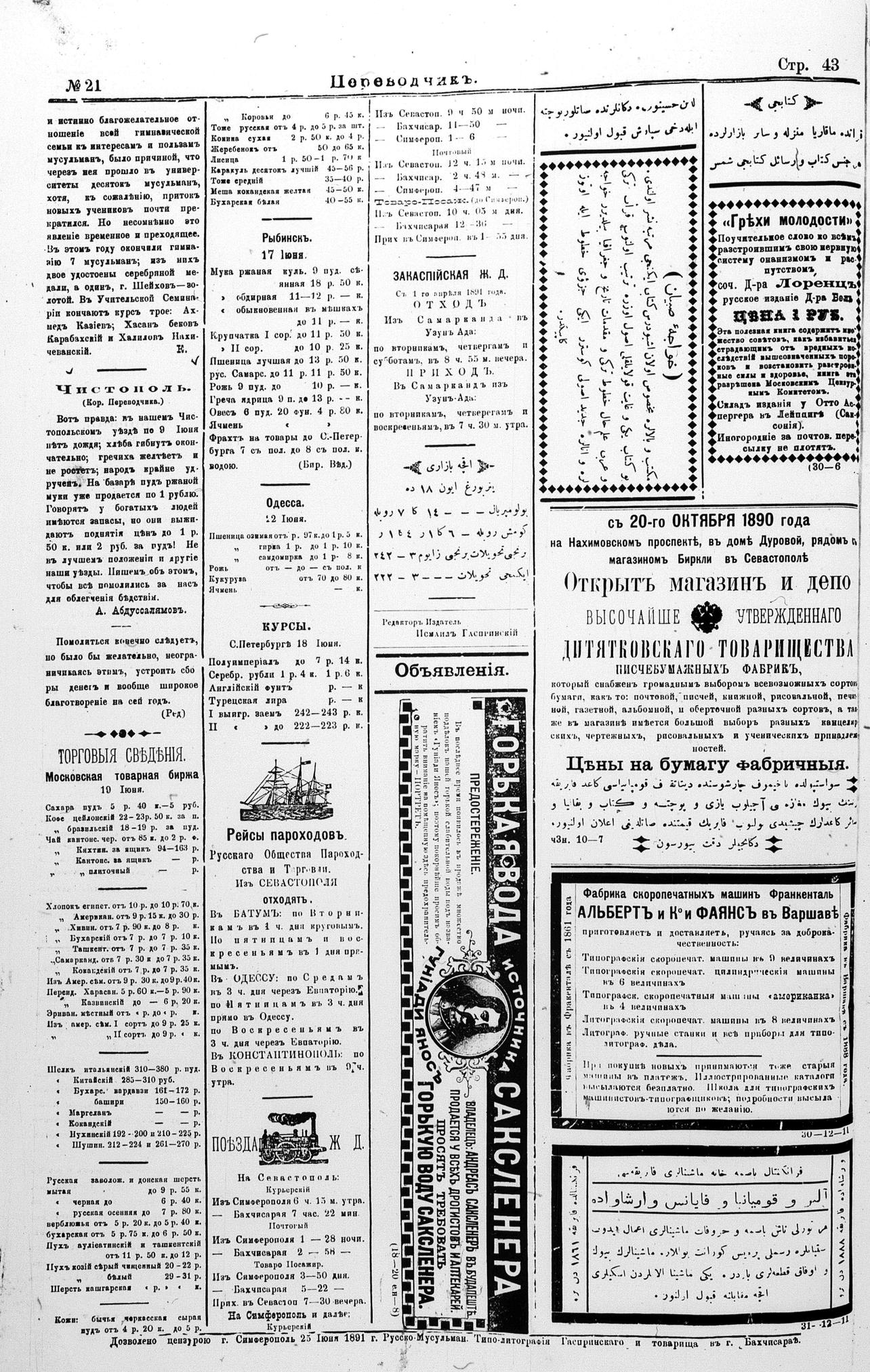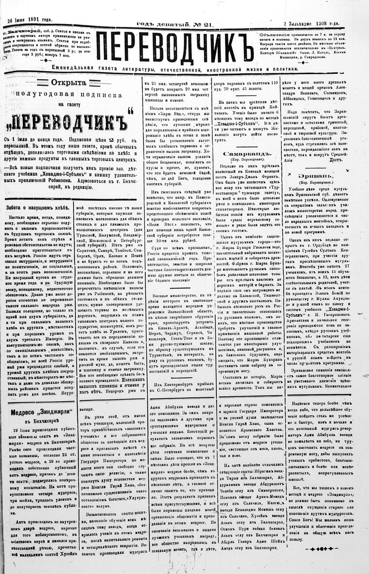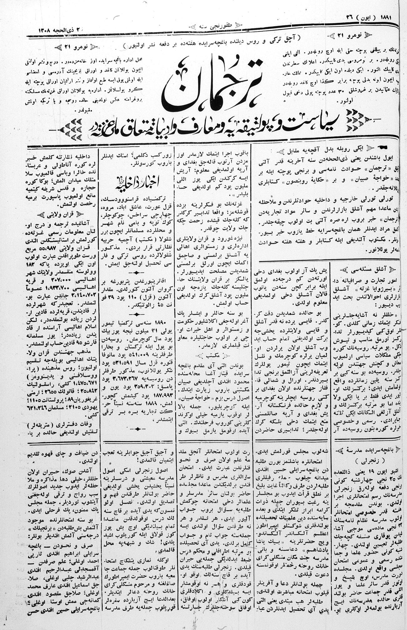 Tercüman, 26 June 1891 Year 9 No 21