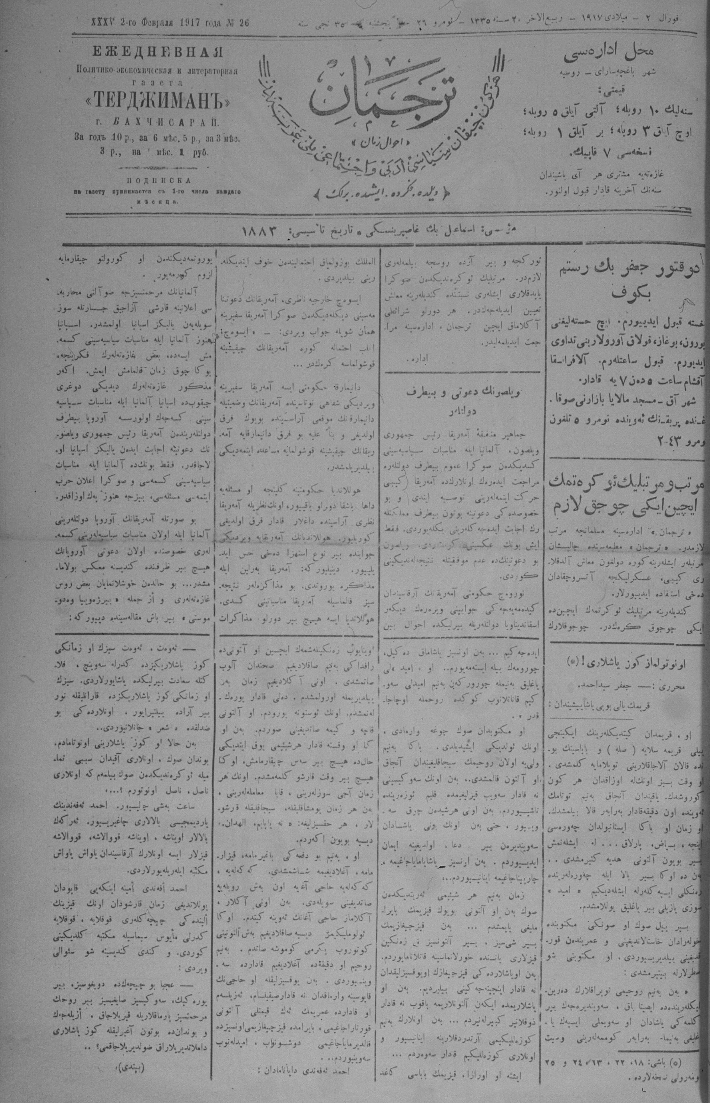 Tercüman, 02 February 1917 Year 35 No 26