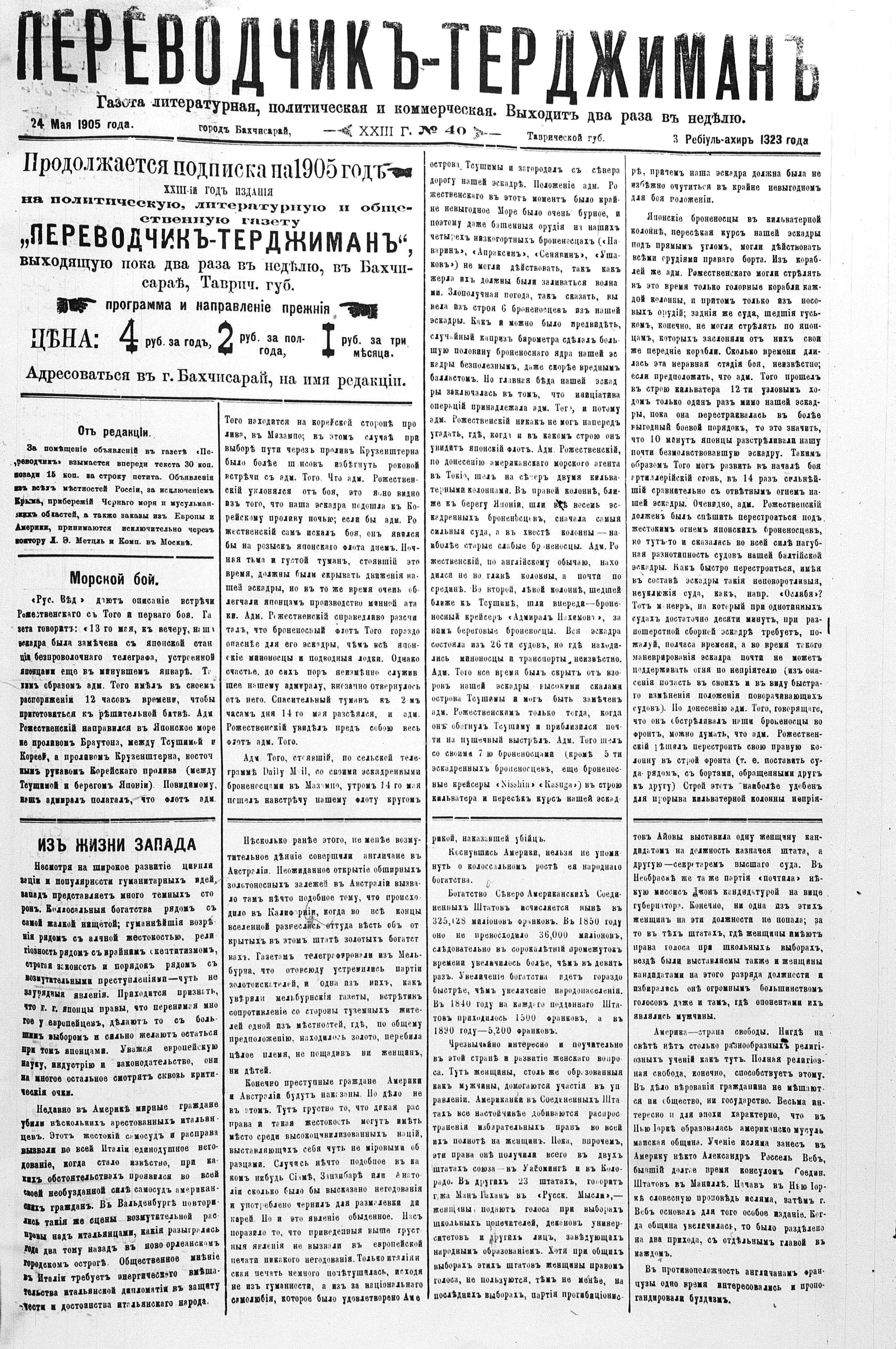 Tercüman, 24 May 1905 Year 23 No 40