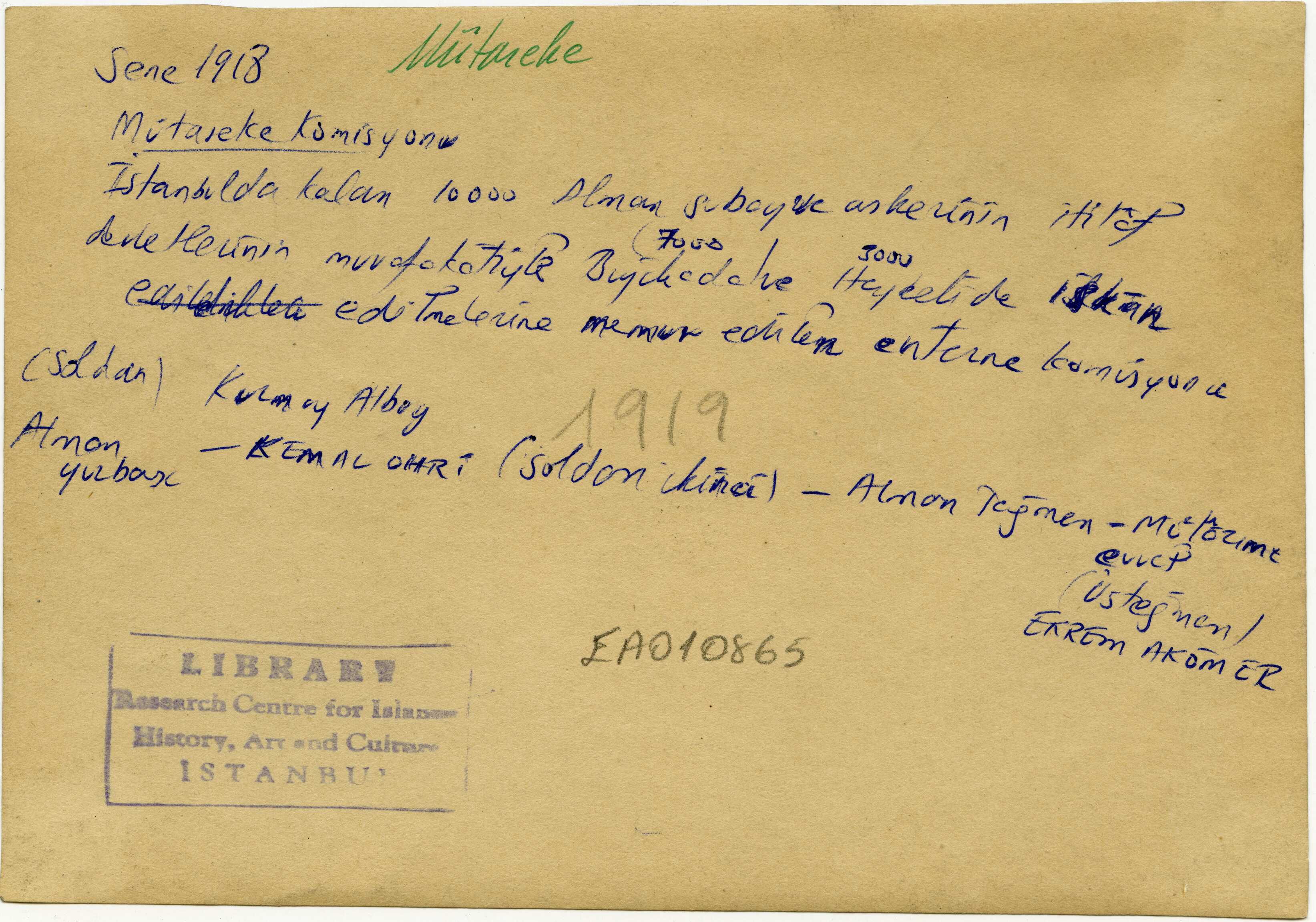 The Internment Commission, which was tasked with settling 10,000 German officers and soldiers remaining in Istanbul, 7,000 of whom were on Büyükada and 3,000 on Heybeliada, with the success of the Allied Powers.