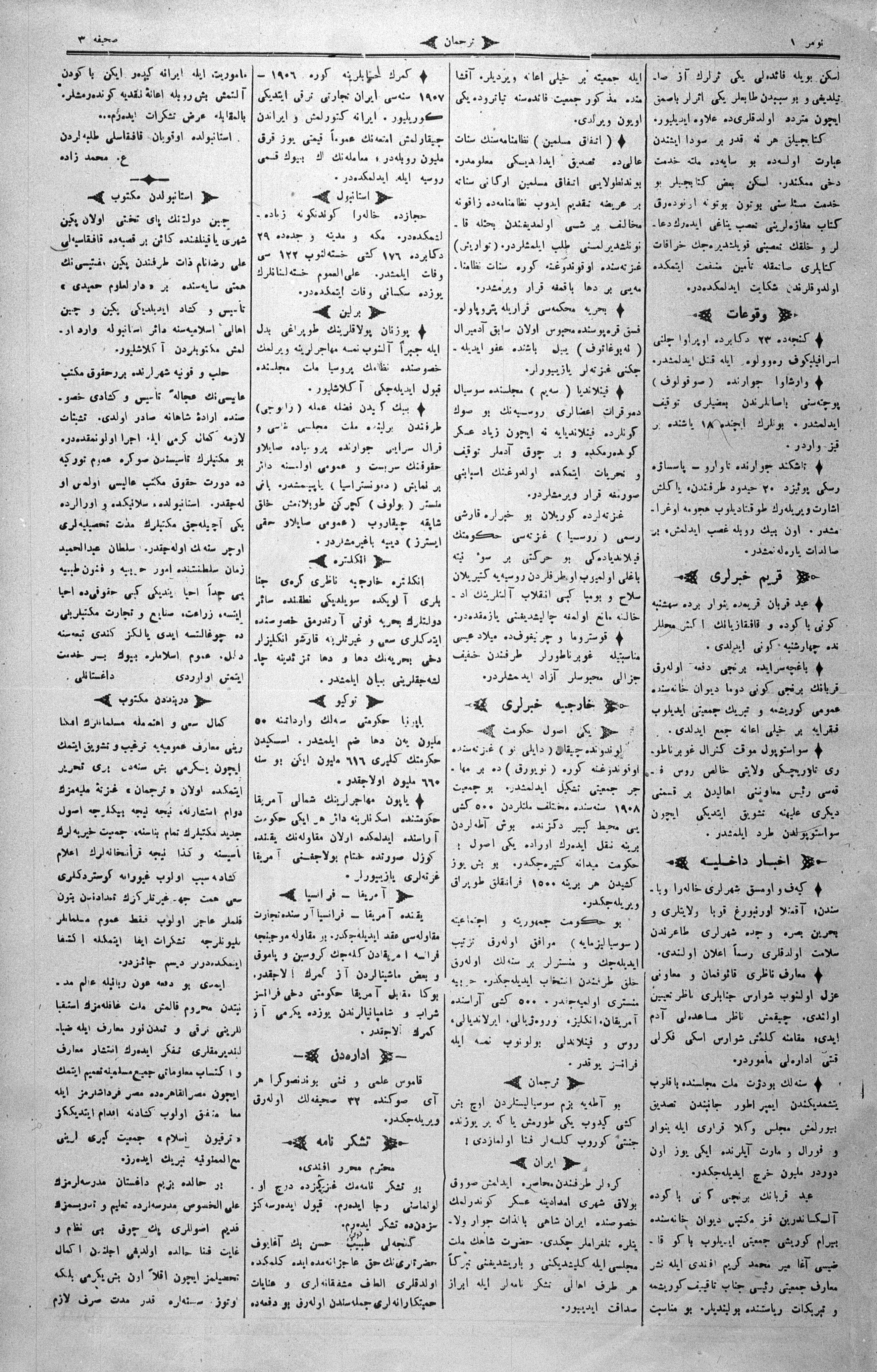 Tercüman, 08 January 1908 Year 26 No 1