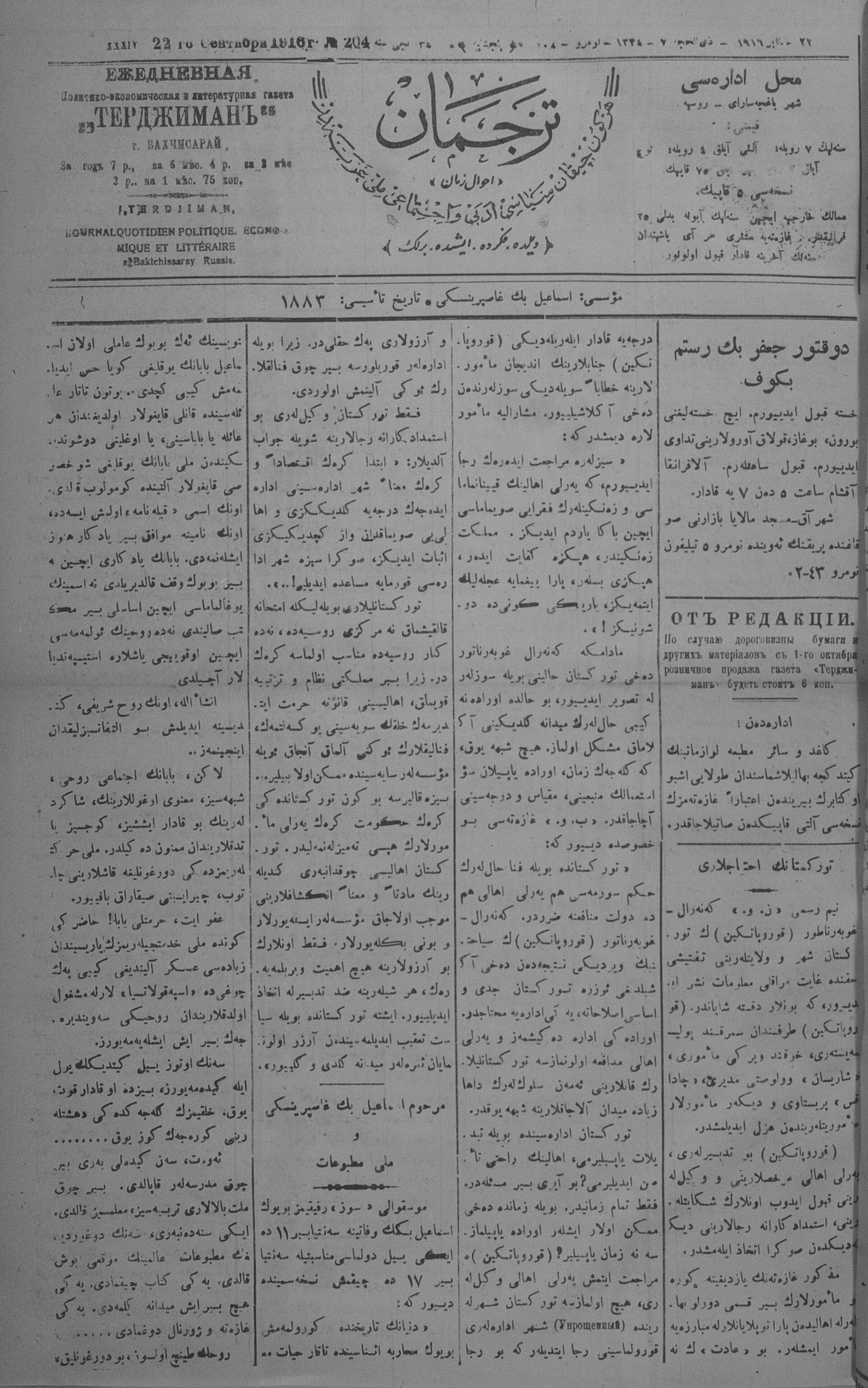 Tercüman, 22 September 1916 Year 34 No 204