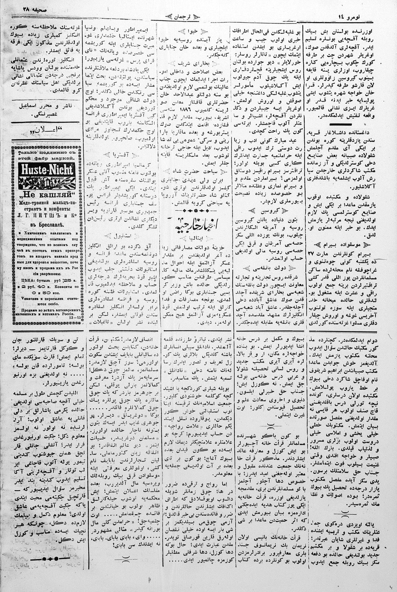 Turkish-Russian newspaper published in Crimea by İsmail Gaspıralı.