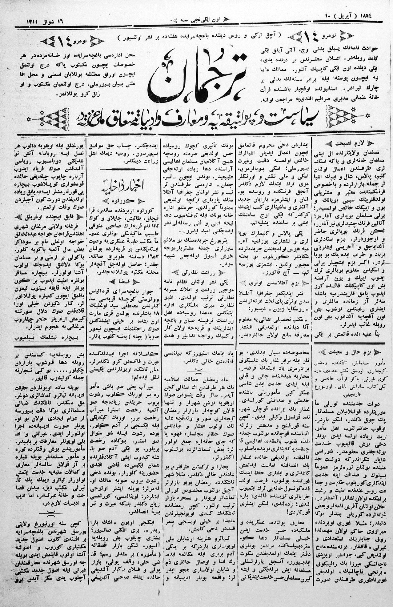 Tercüman, 10 April 1894 Year 12 No 14