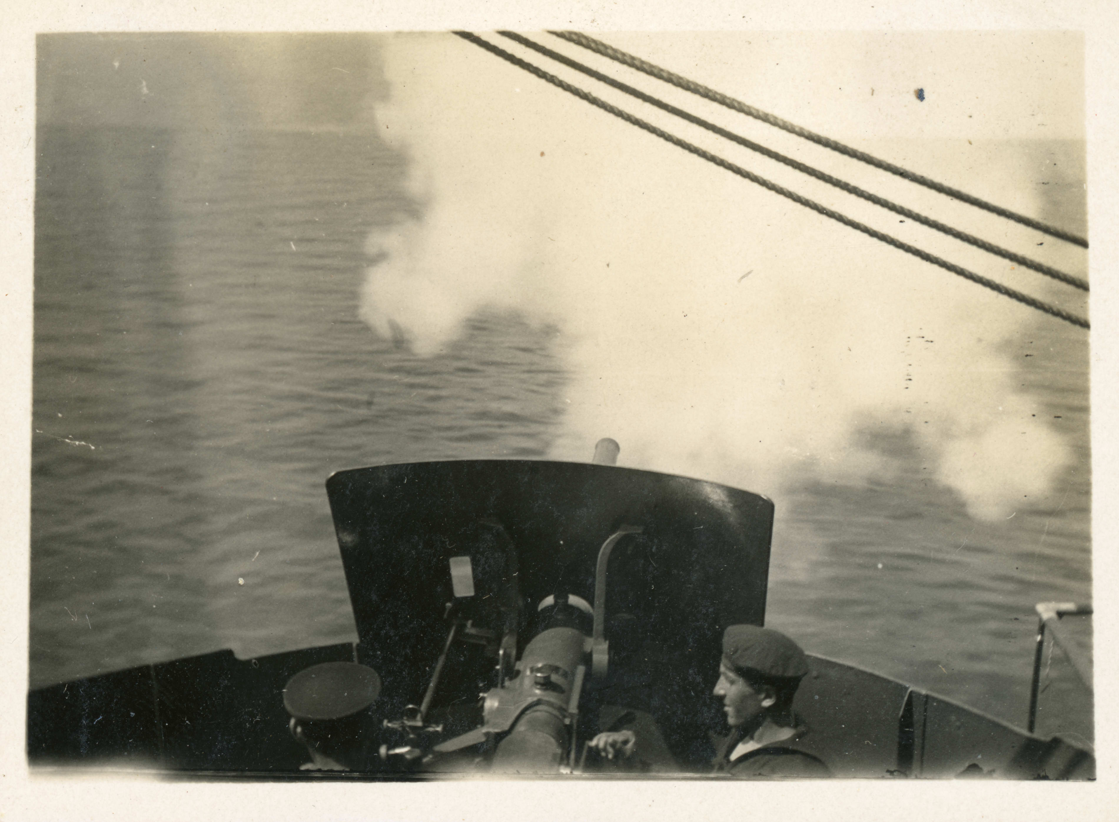 Deniz manevrasında Türk donanma gemilerinden birinde top atılırken