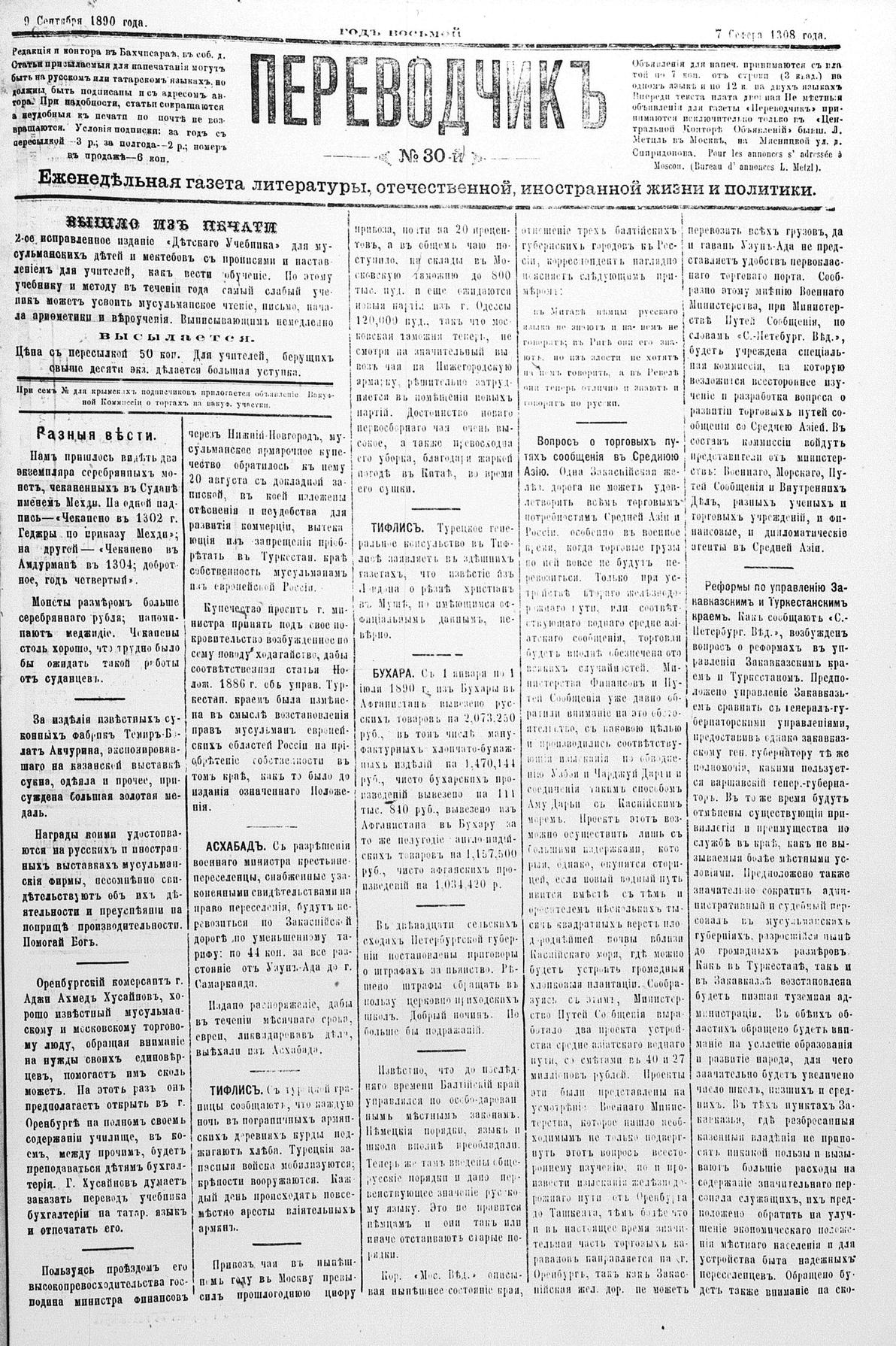 Tercüman, 09 September 1890 Year 8 No 30