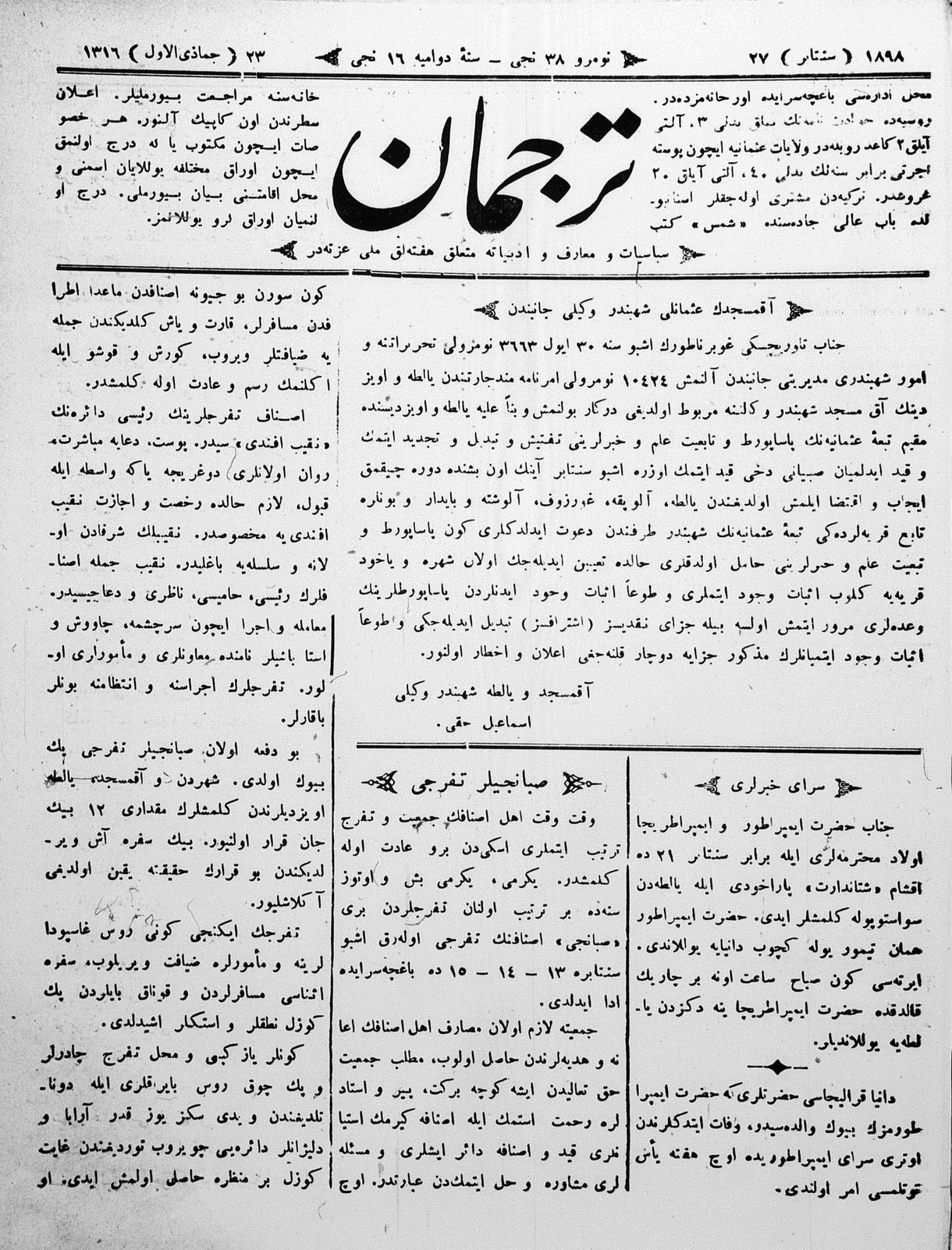 Tercüman, 27 September 1898 Year 16 No 38