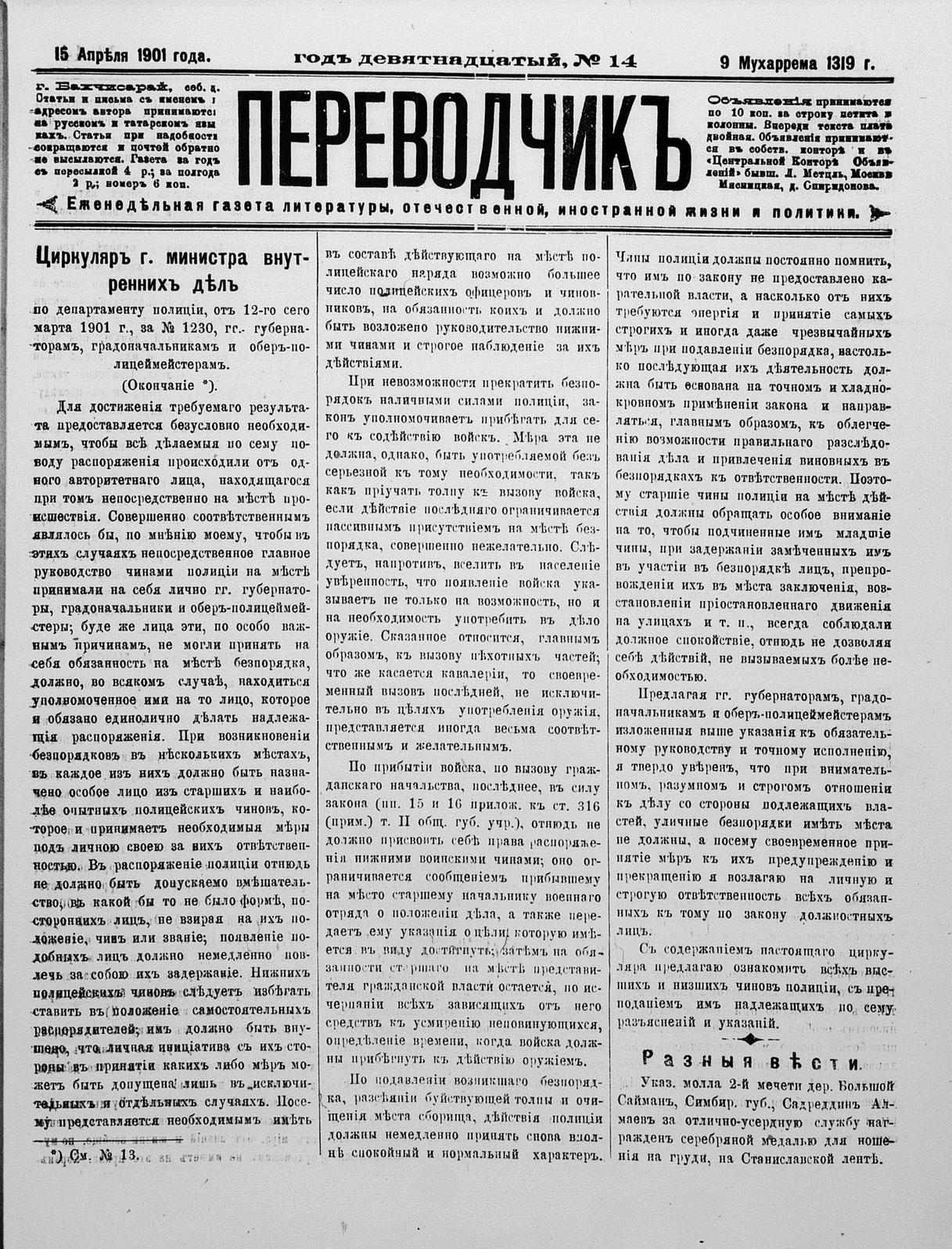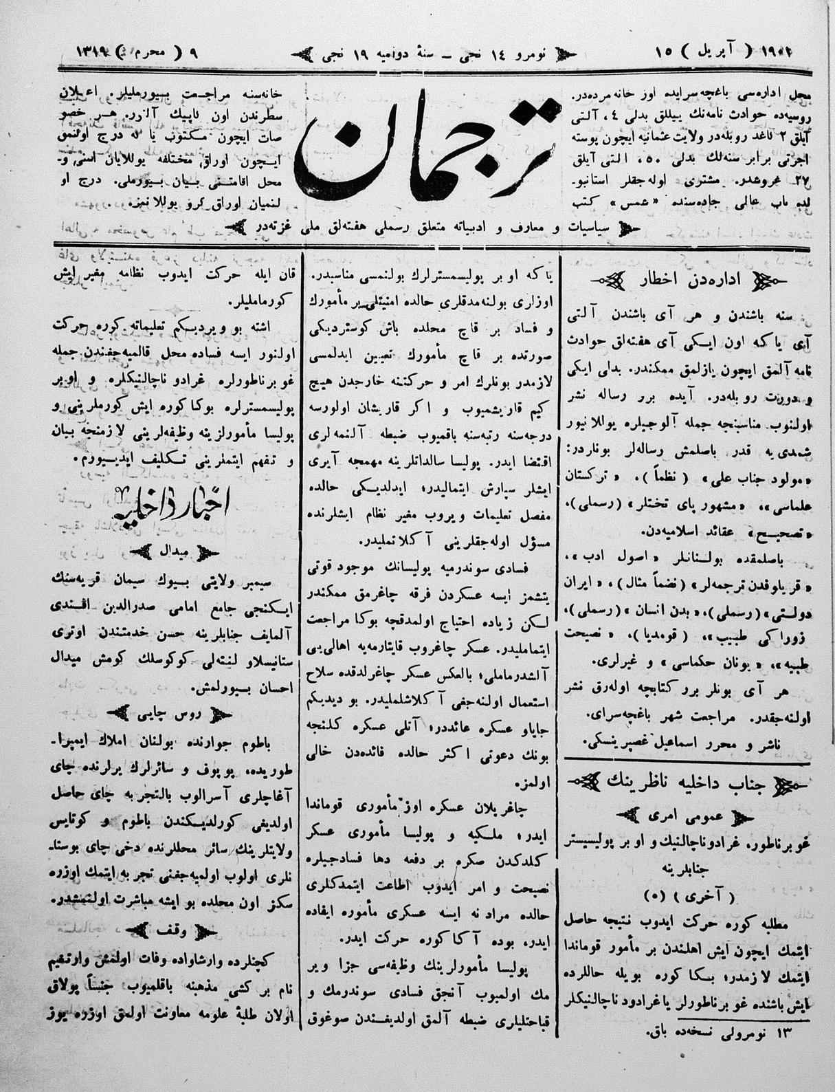 Tercüman, 15 April 1901 Year 19 No 14