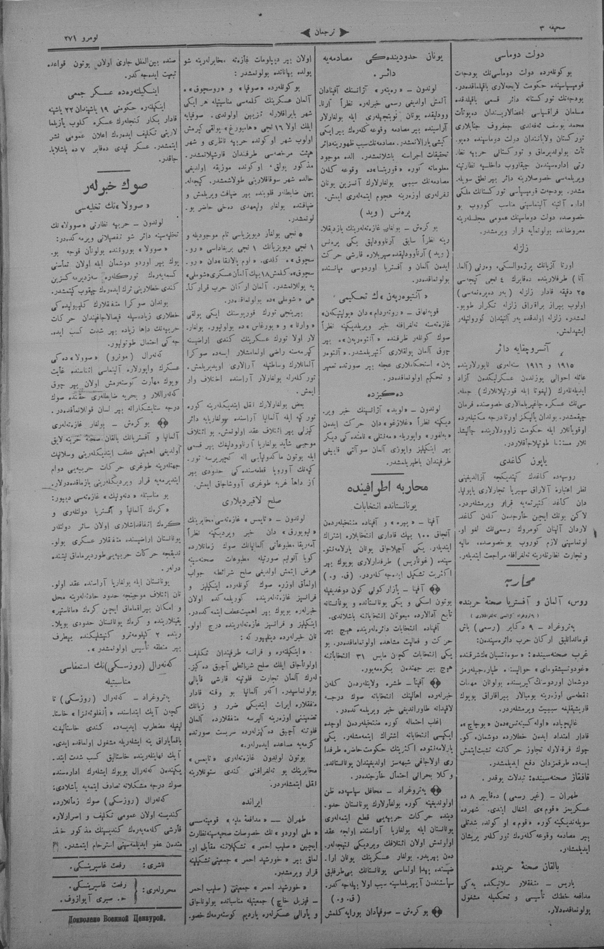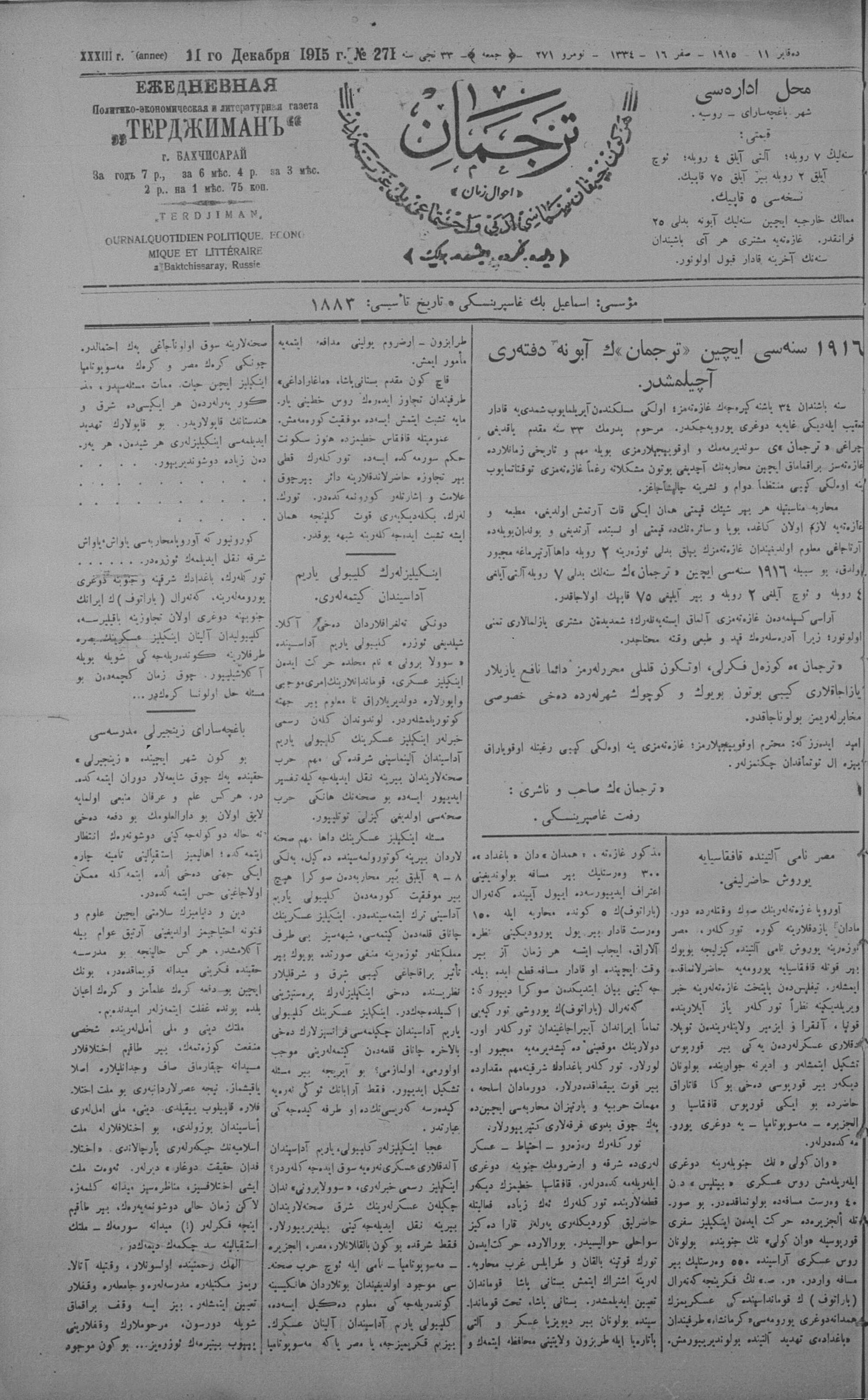 Tercüman, 11 December 1915 Year 33 No 271