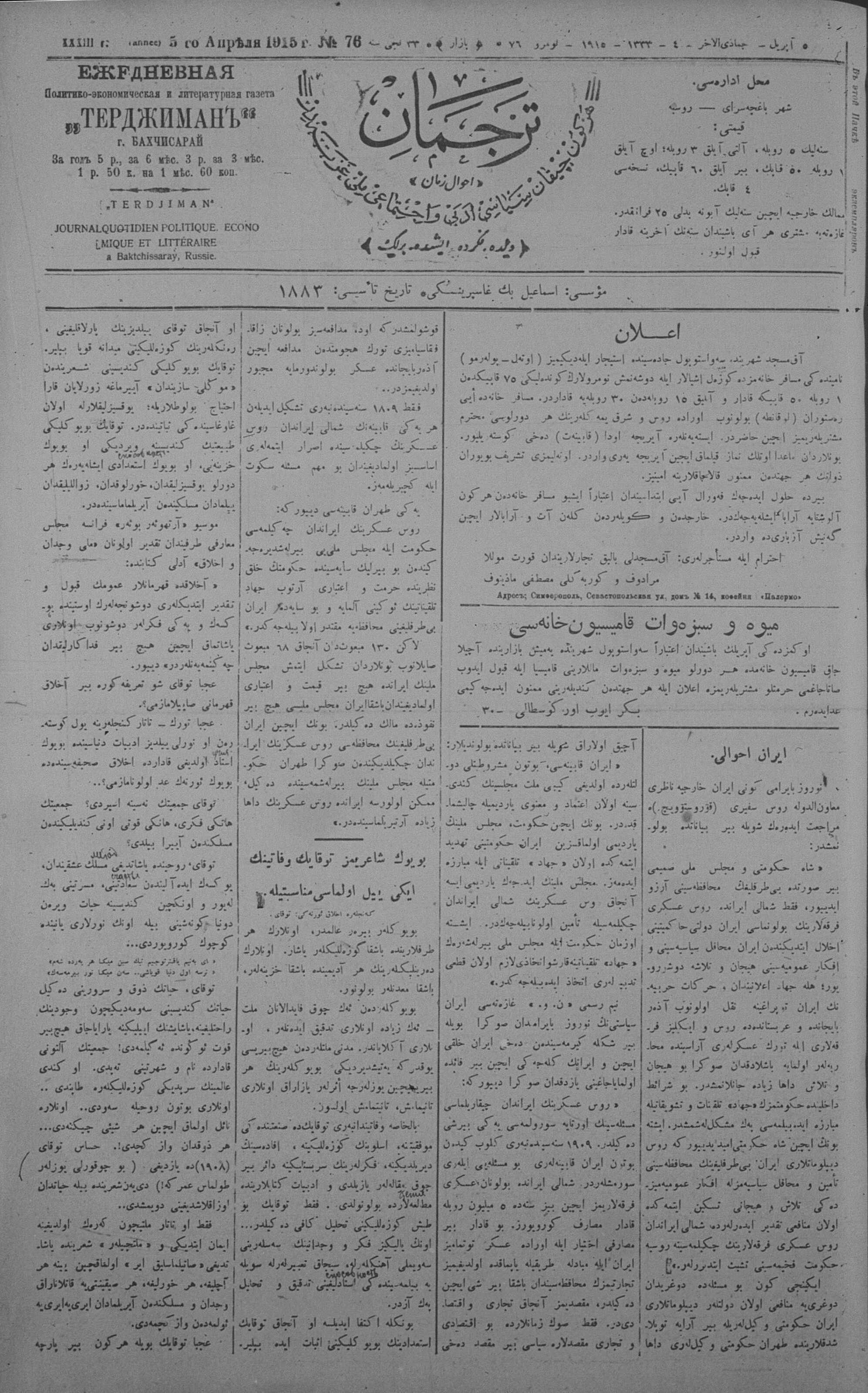 Tercüman, 05 April 1915 Year 33 No 76