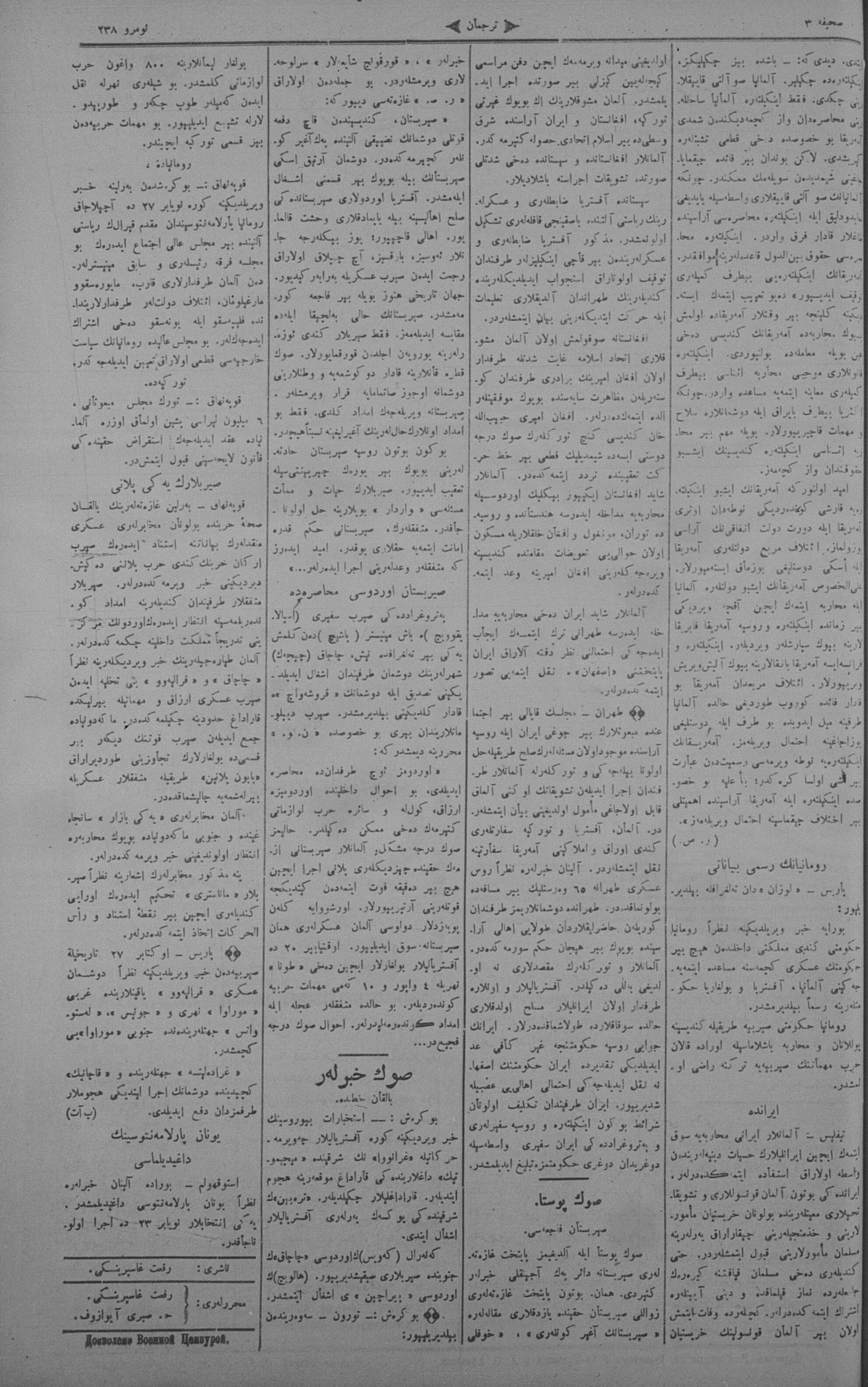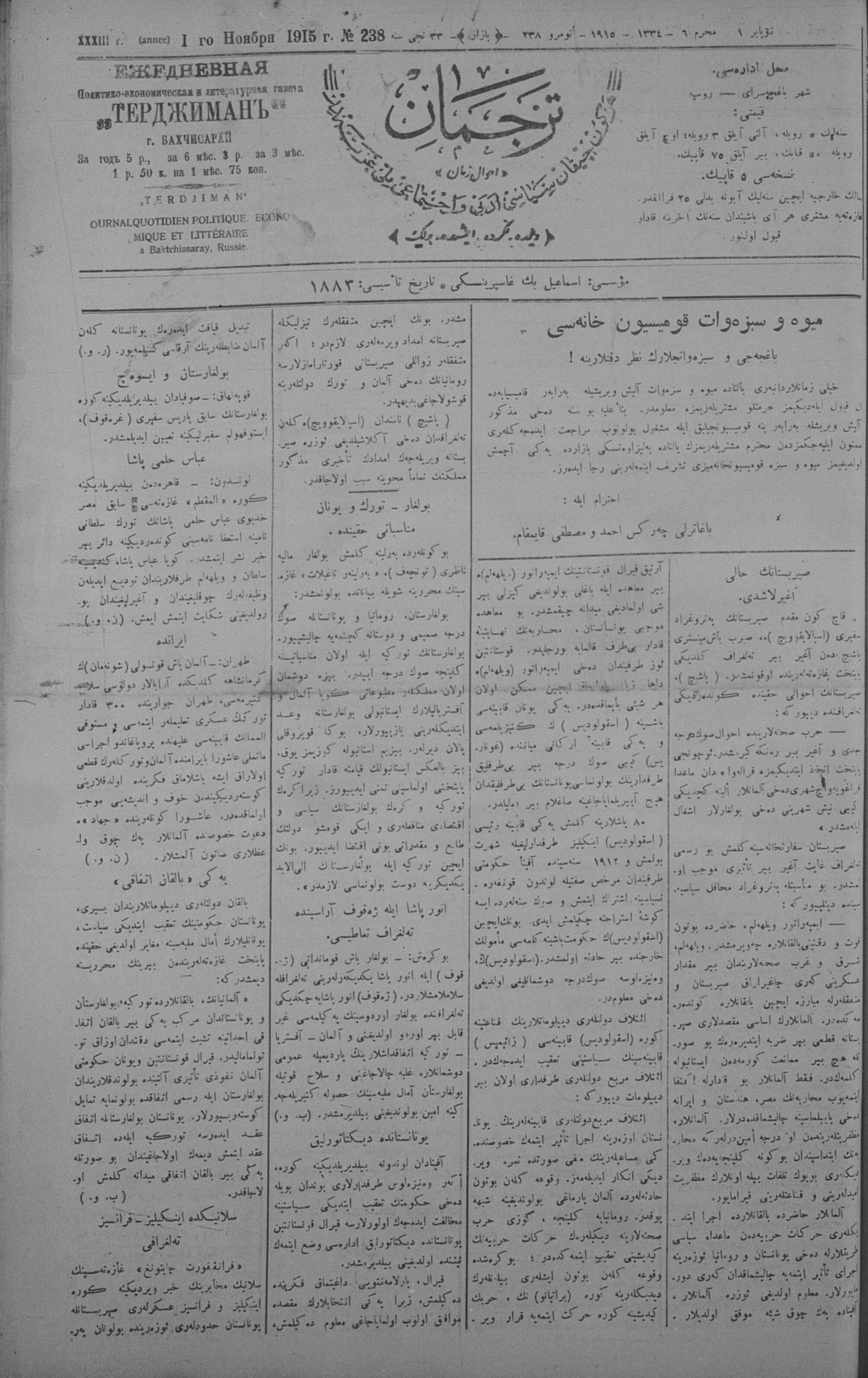 Tercüman, 01 November 1915 Year 33 No 238