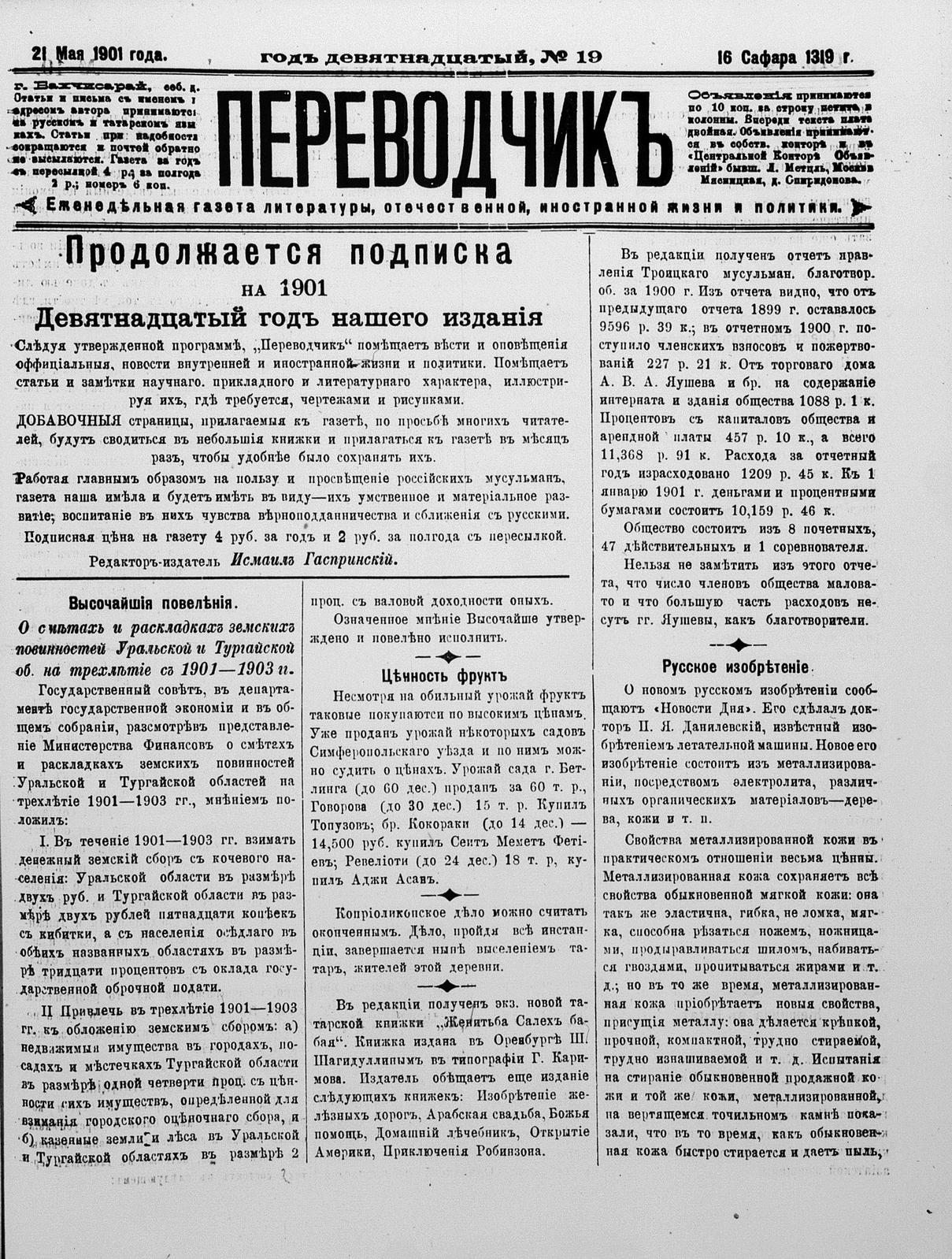 Turkish-Russian newspaper published in Crimea by İsmail Gaspıralı.