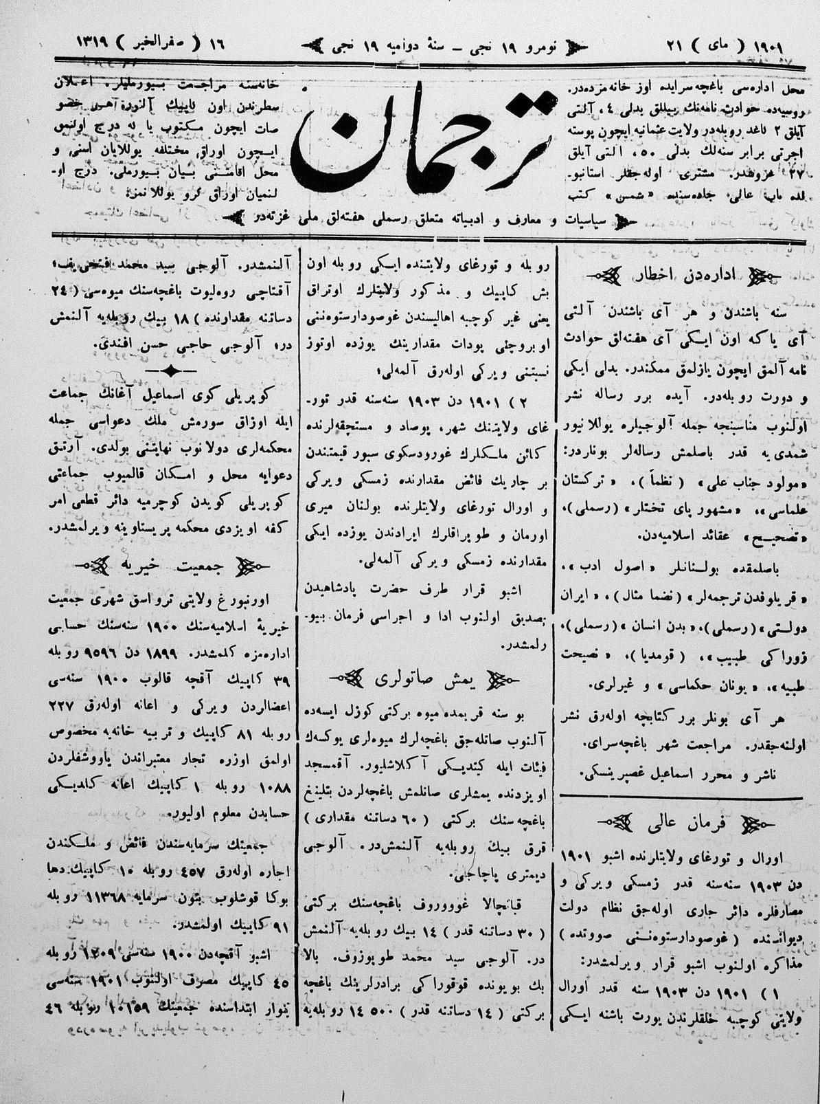 The name of the newspaper changed to Tercüman-ı Ahval-i Zaman in 1905. In 1909, it started to be published under its first name, Tercüman.