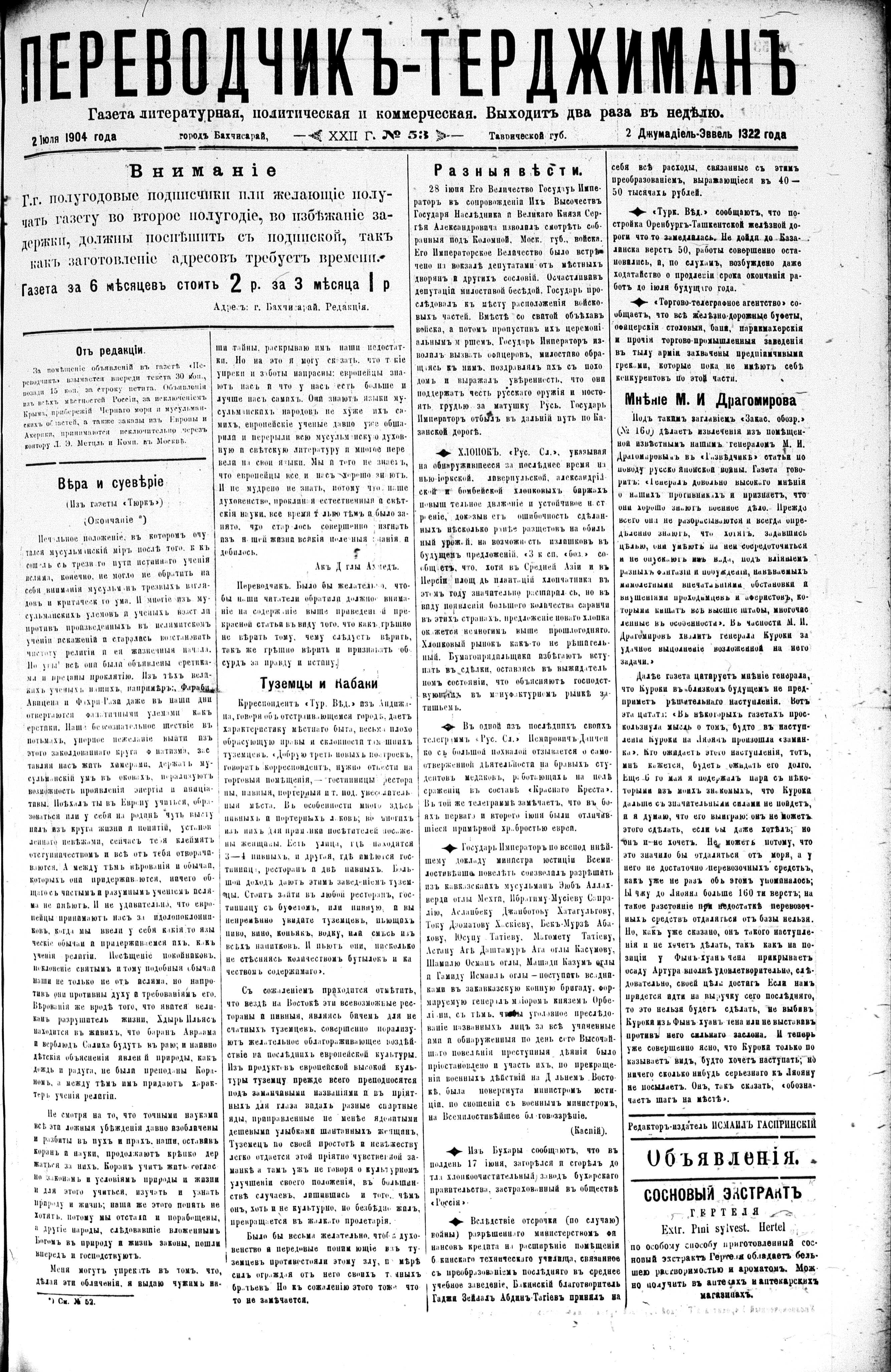 Turkish-Russian newspaper published in Crimea by İsmail Gaspıralı.