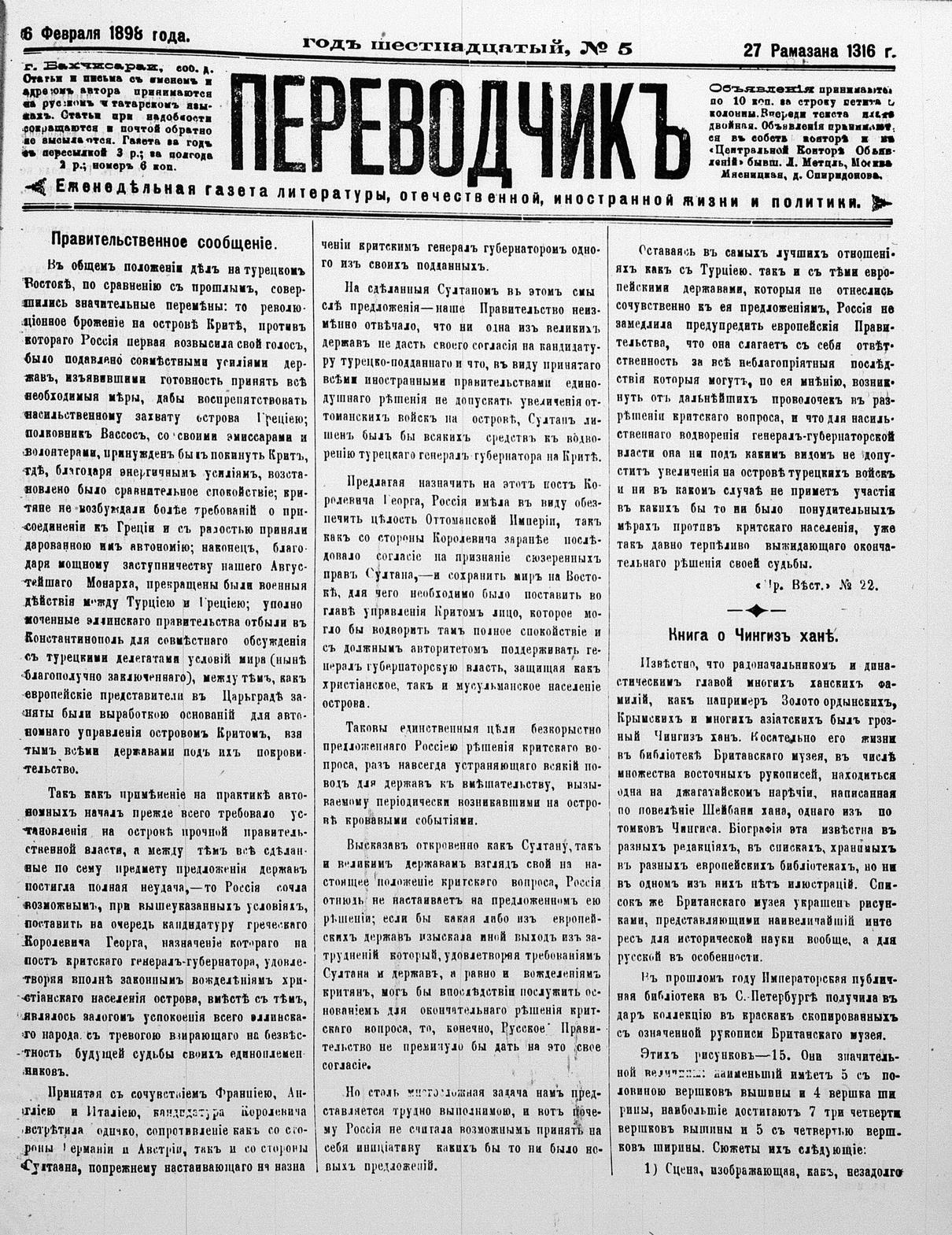 Turkish-Russian newspaper published in Crimea by İsmail Gaspıralı.