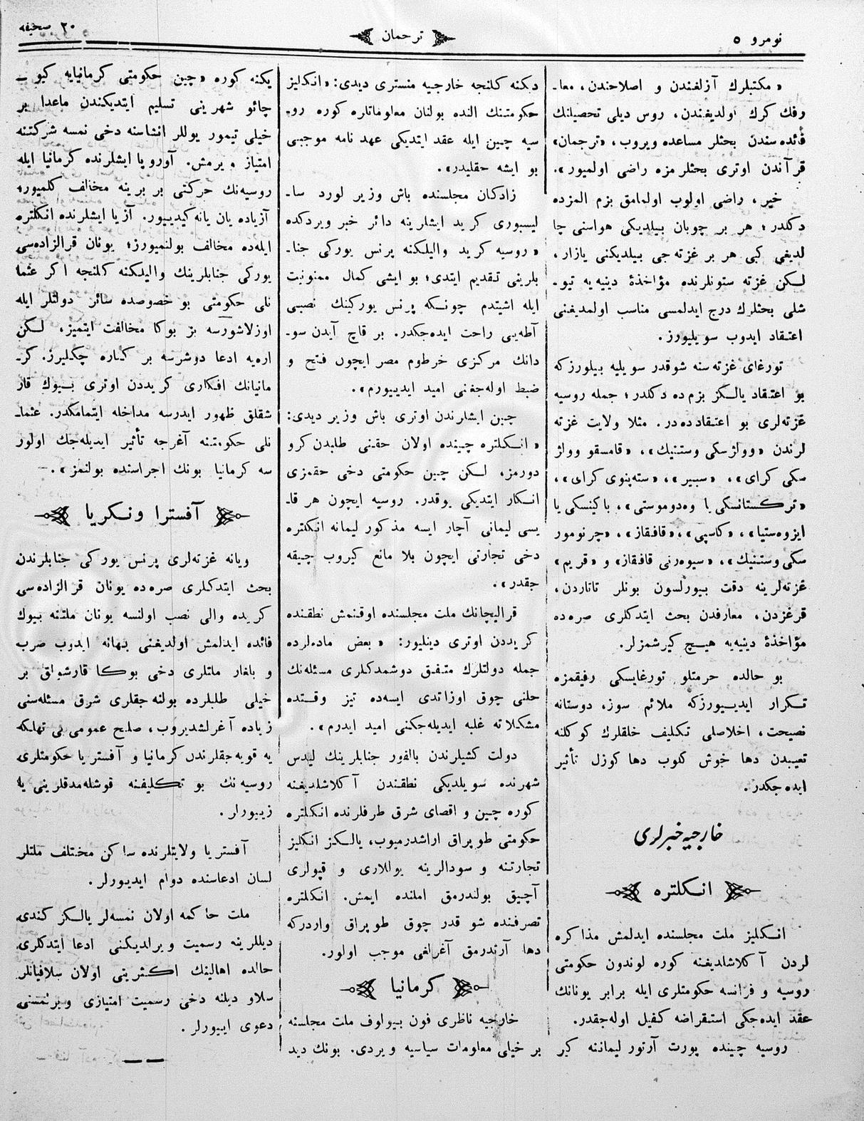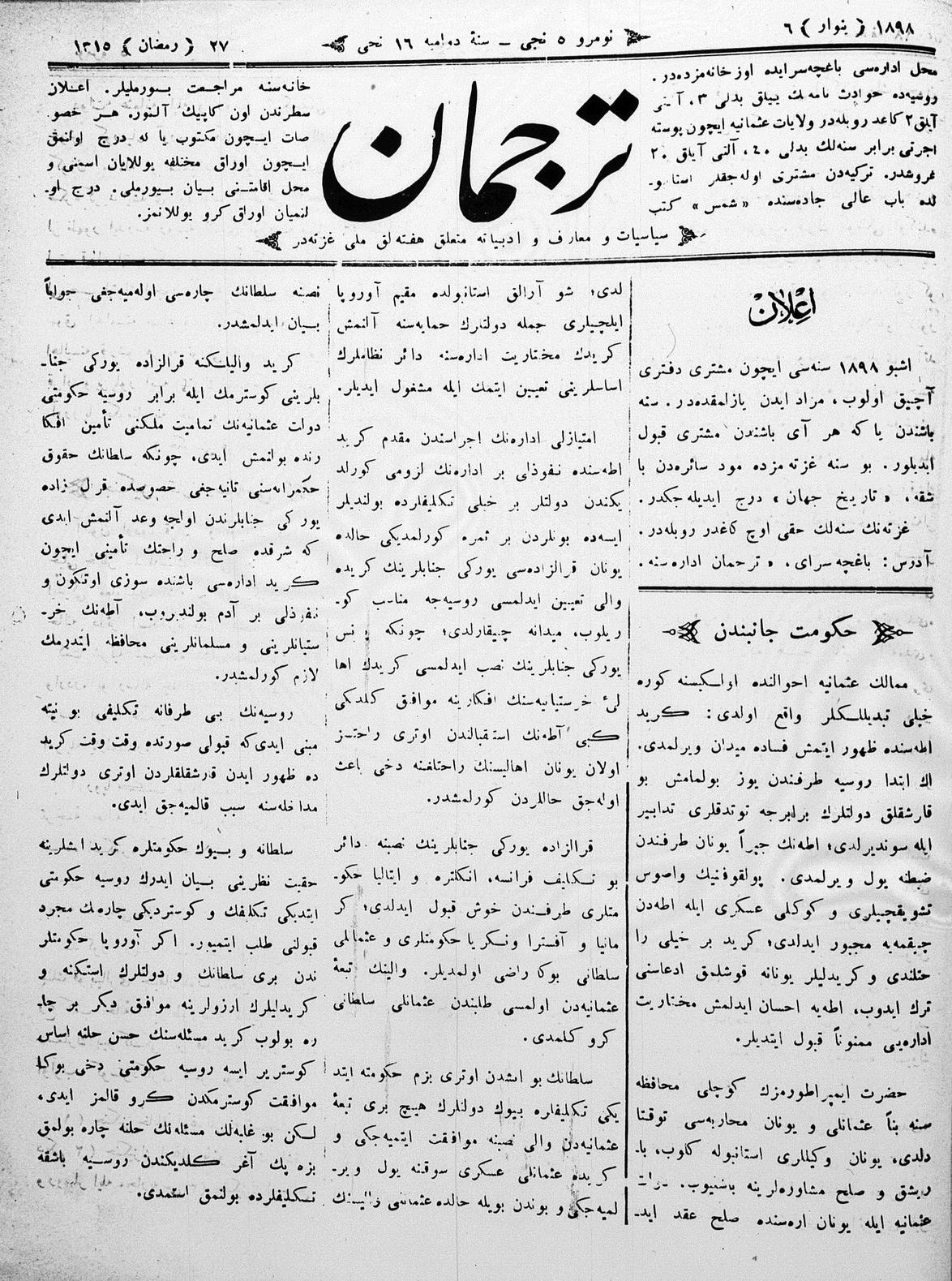 The name of the newspaper changed to Tercüman-ı Ahval-i Zaman in 1905. In 1909, it started to be published under its first name, Tercüman.