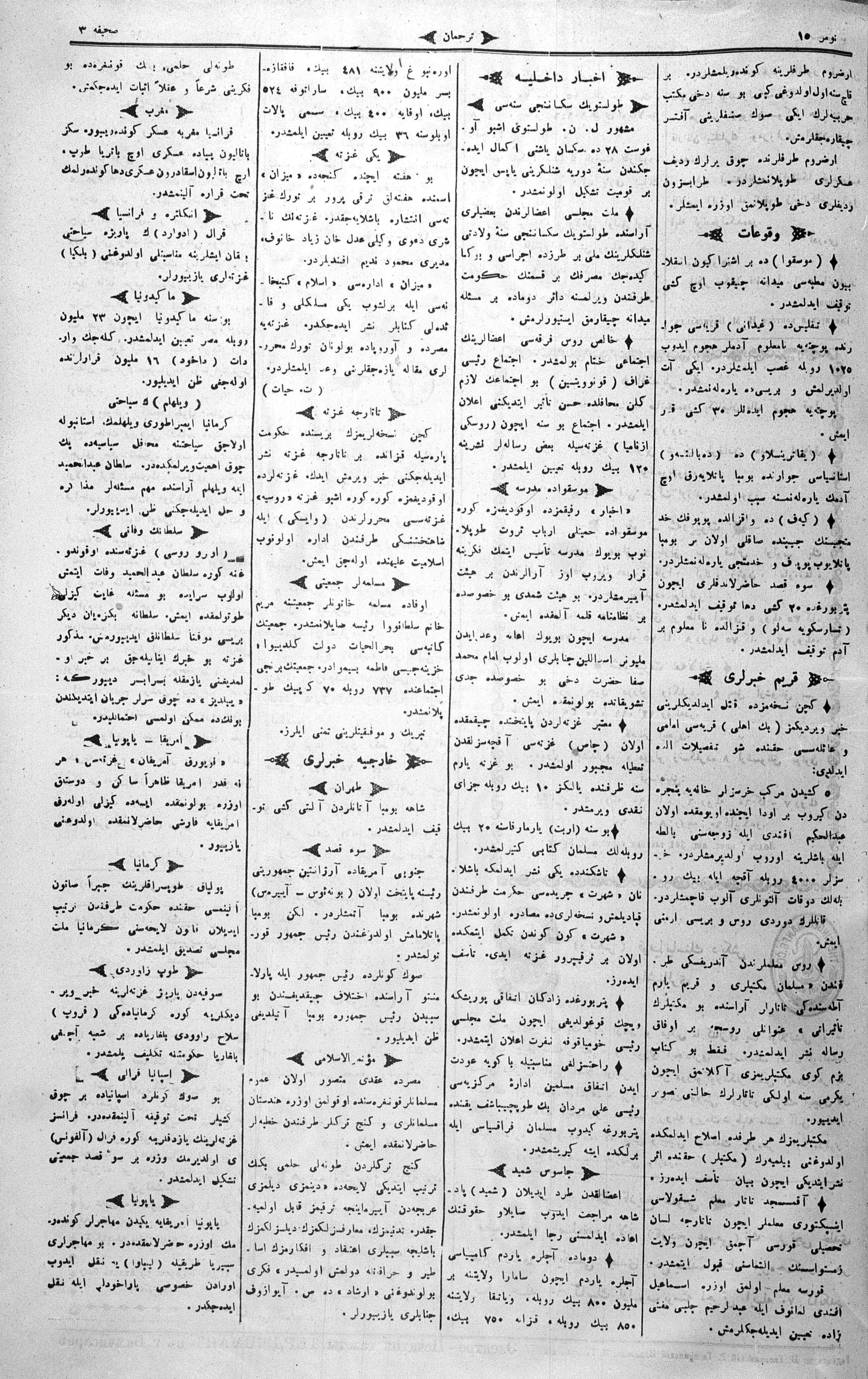 The name of the newspaper changed to Tercüman-ı Ahval-i Zaman in 1905. In 1909, it started to be published under its first name, Tercüman.