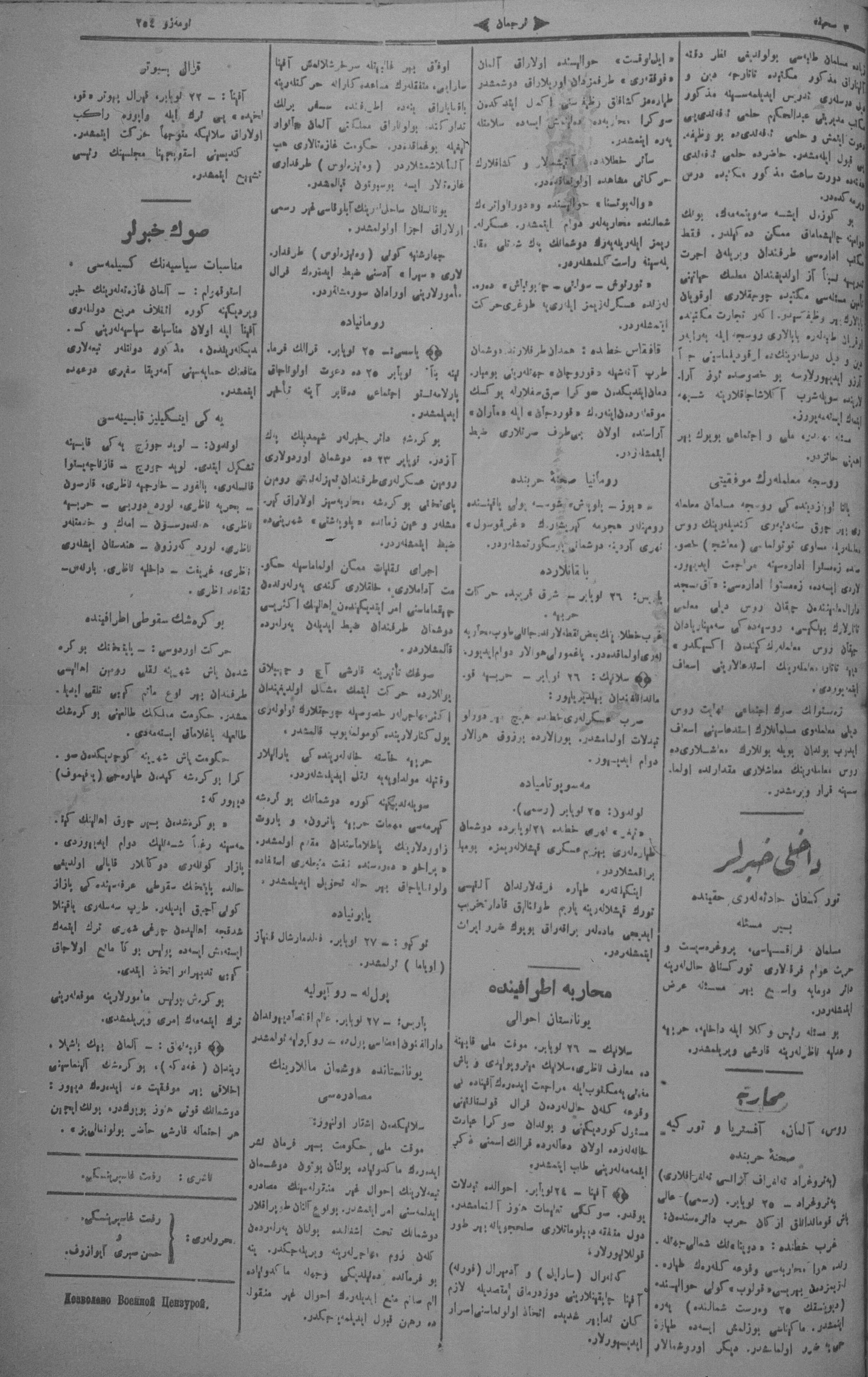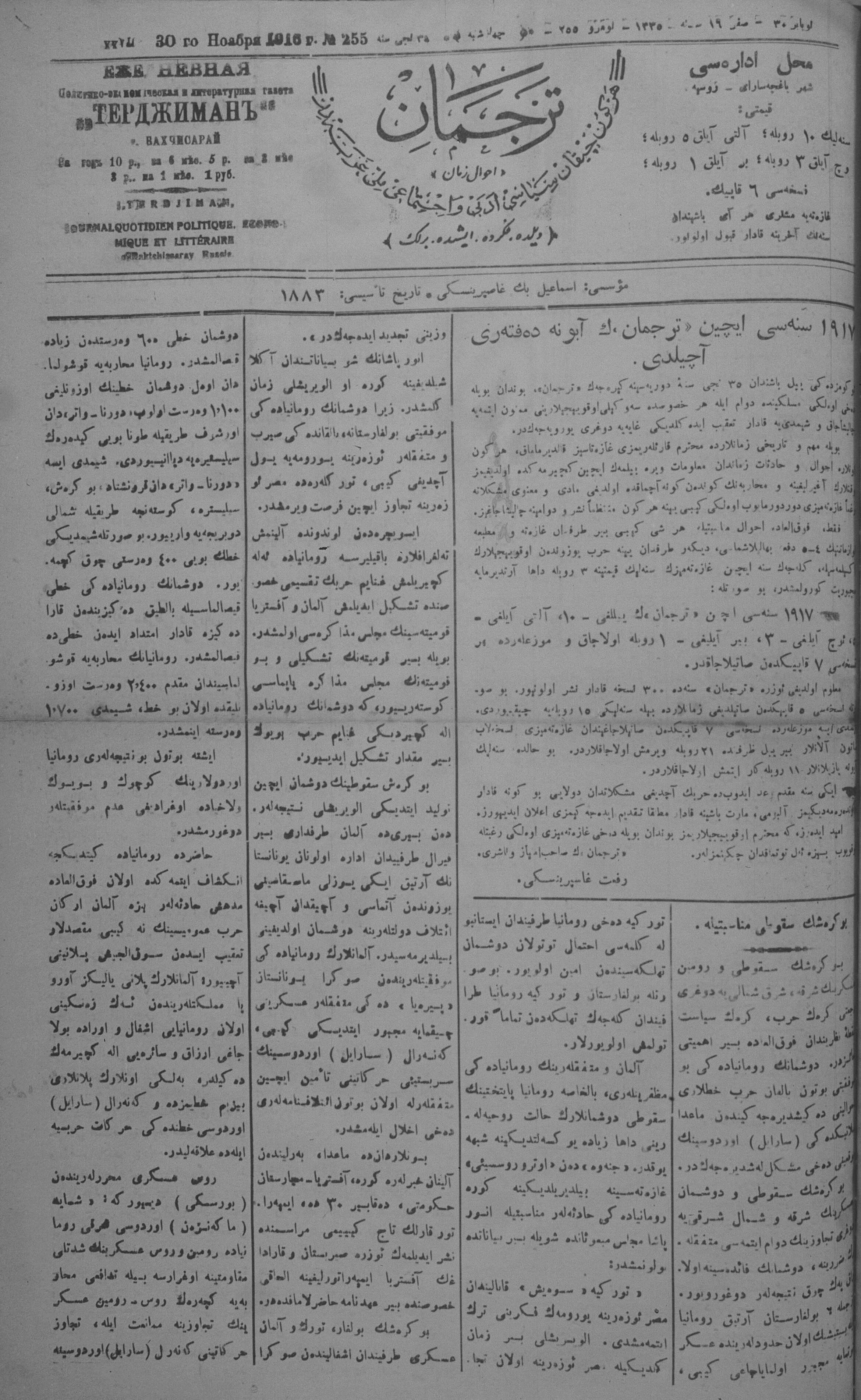 Tercüman, 30 November 1916 Year 34 No 255