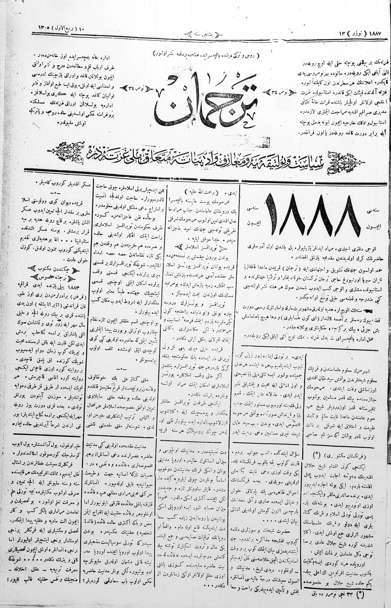 Tercüman, 13 November 1887 Year 5 No 34