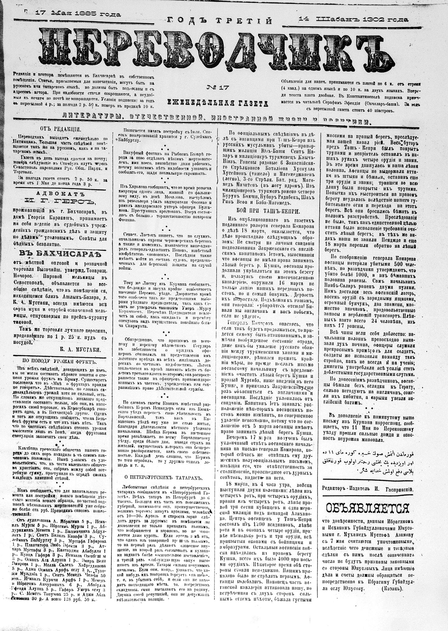 Turkish-Russian newspaper published in Crimea by Gaspirali Ismail Bey.