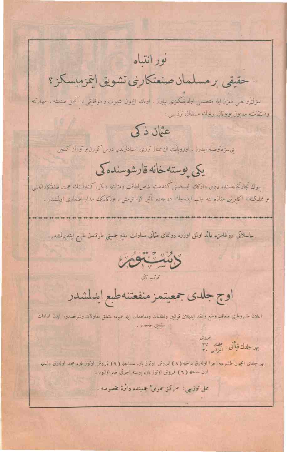 The name of the periodical was published under the following titles in different periods: Donanma: Donanma Cemiyetinin haftalık gazetesi; Donanma: istikbal denizlerdedir; Donanma: şimdilik ayda bir defa neşrolunur; Donanma: ayda bir defa neşr olunur, musavver, ahlaki, edebi, tarihi, fenni mecmuadır.