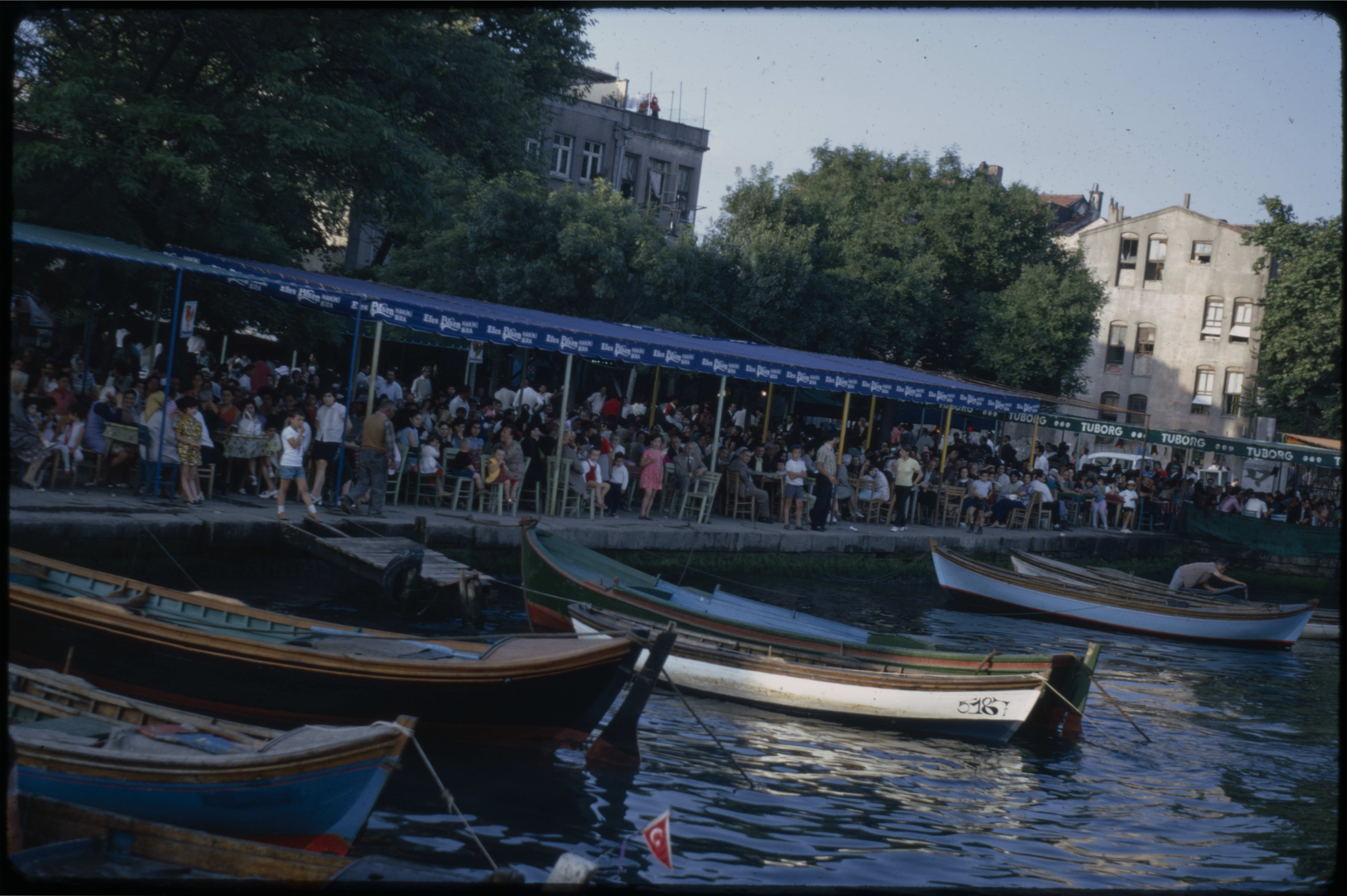 İstanbul-Ortaköy sahilinde dinlenen halk ve kayıklar