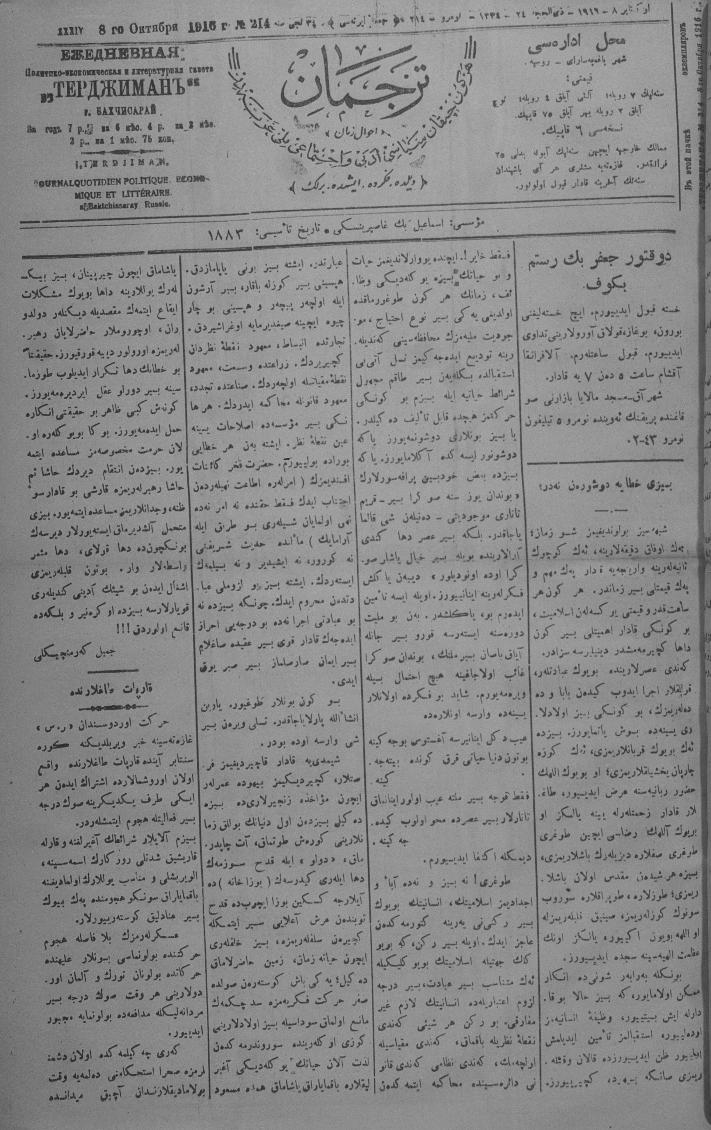 Turkish-Russian newspaper published in Crimea by İsmail Gaspıralı.