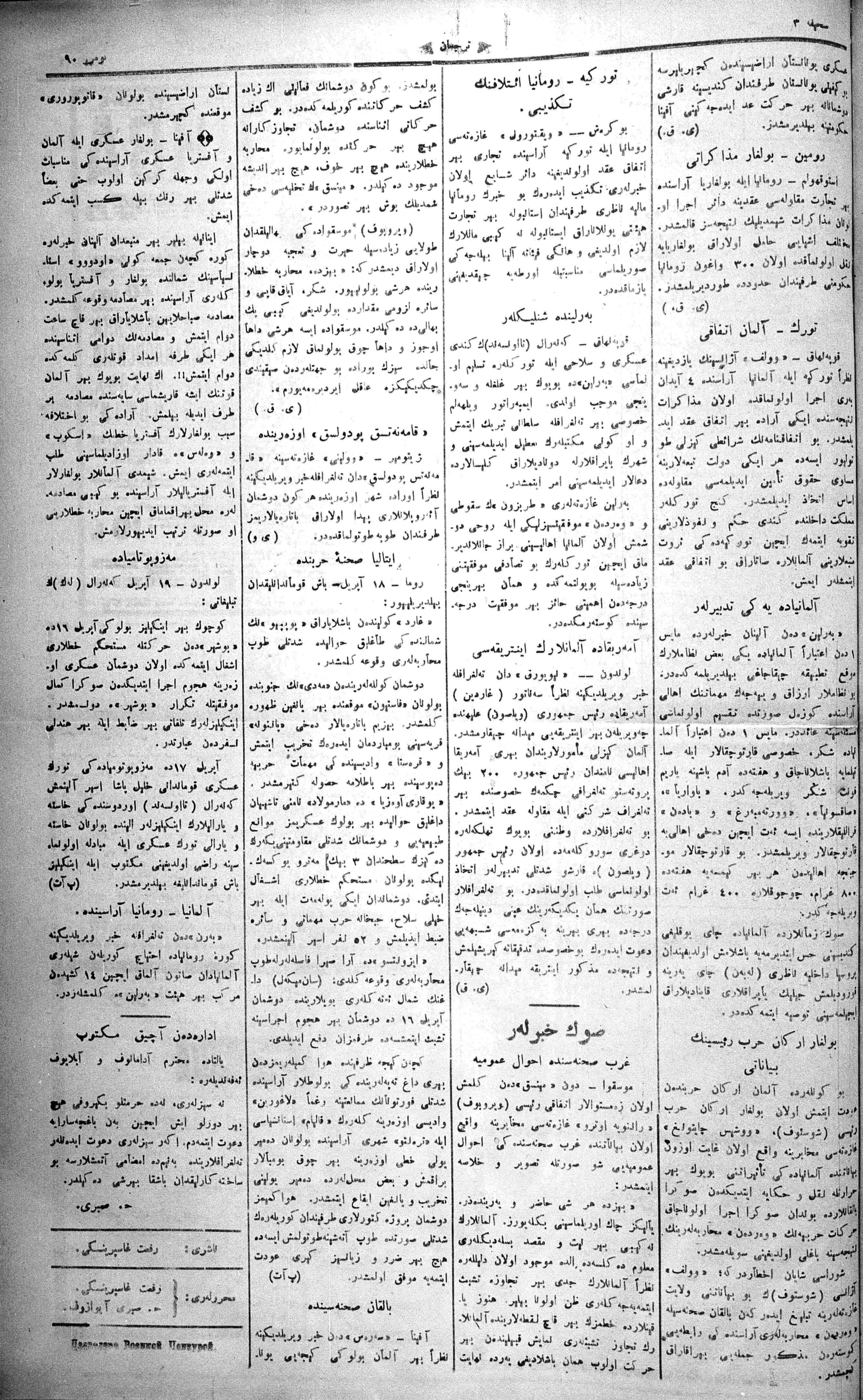 The name of the newspaper changed to Tercüman-ı Ahval-i Zaman in 1905. In 1909, it started to be published under its first name, Tercüman.