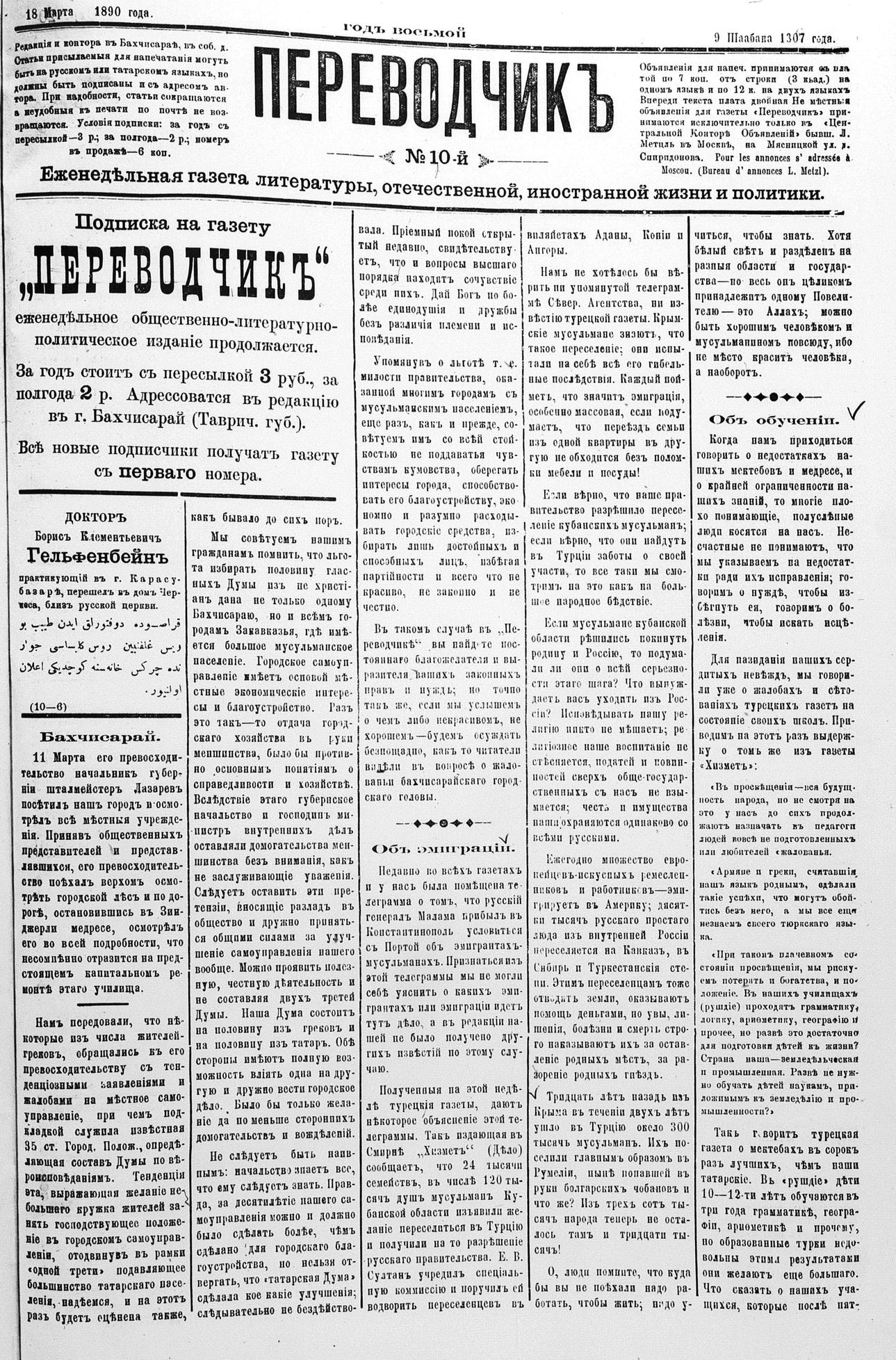 Turkish-Russian newspaper published in Crimea by İsmail Gaspıralı.