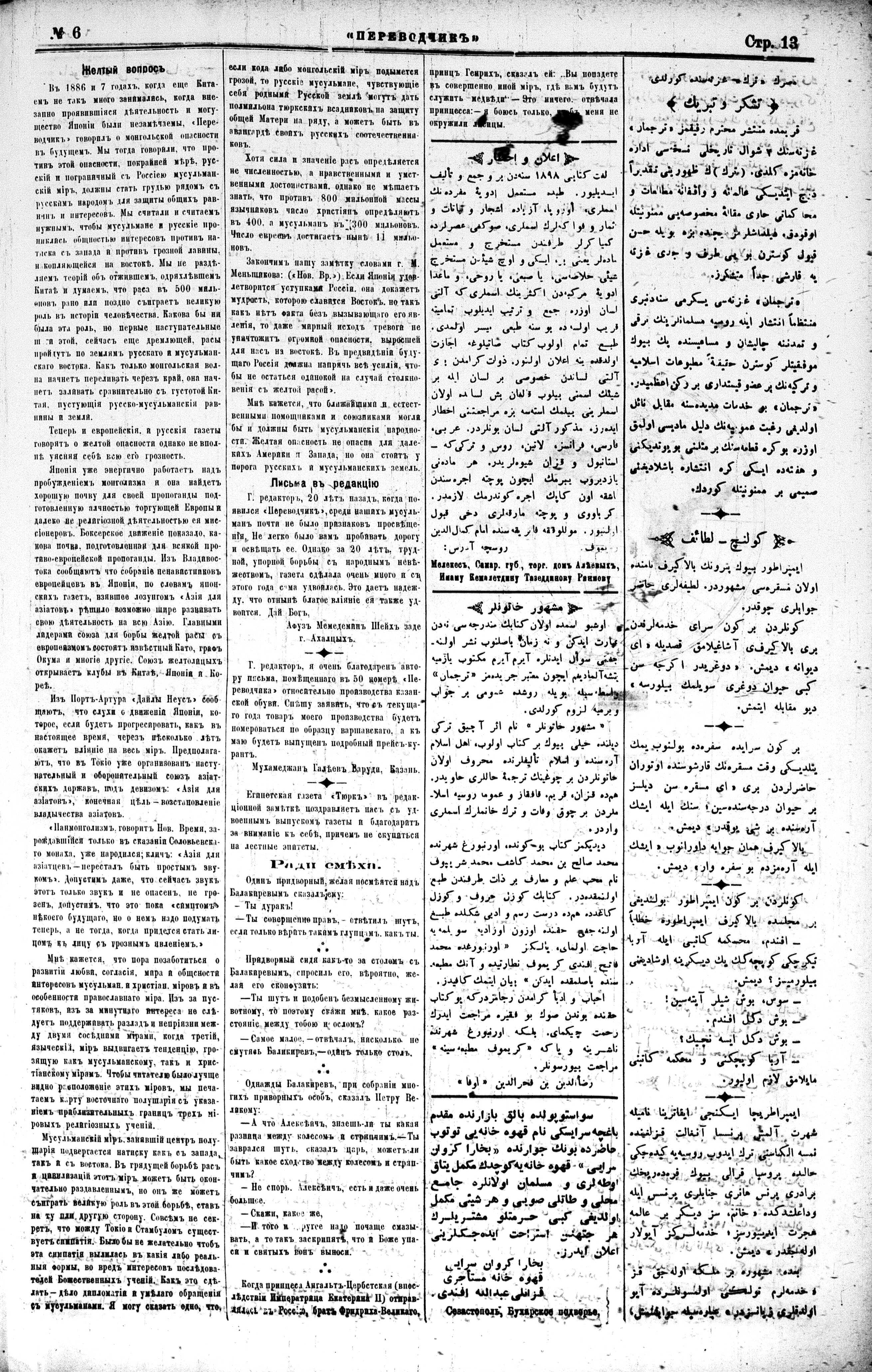 Turkish-Russian newspaper published in Crimea by İsmail Gaspıralı.
