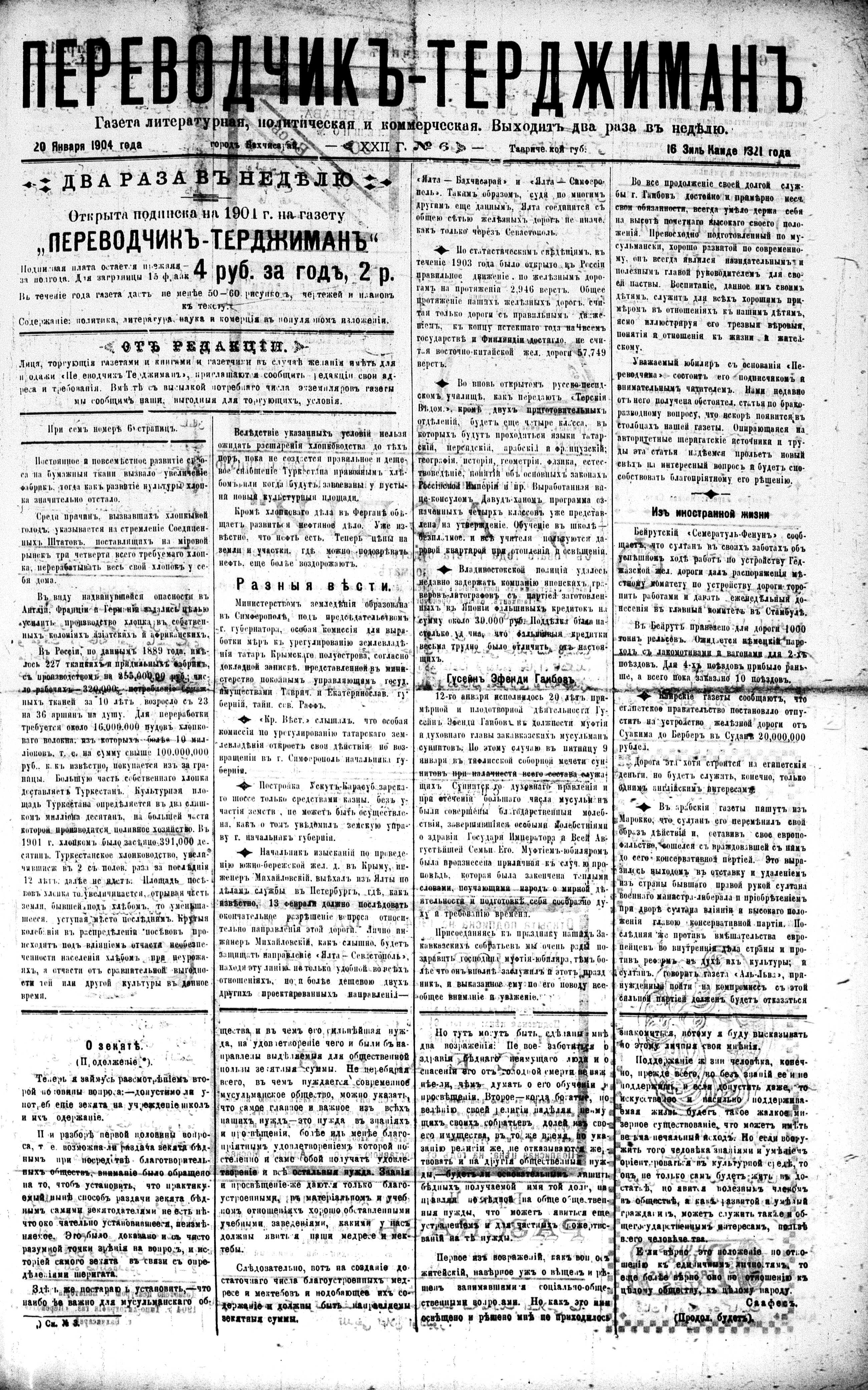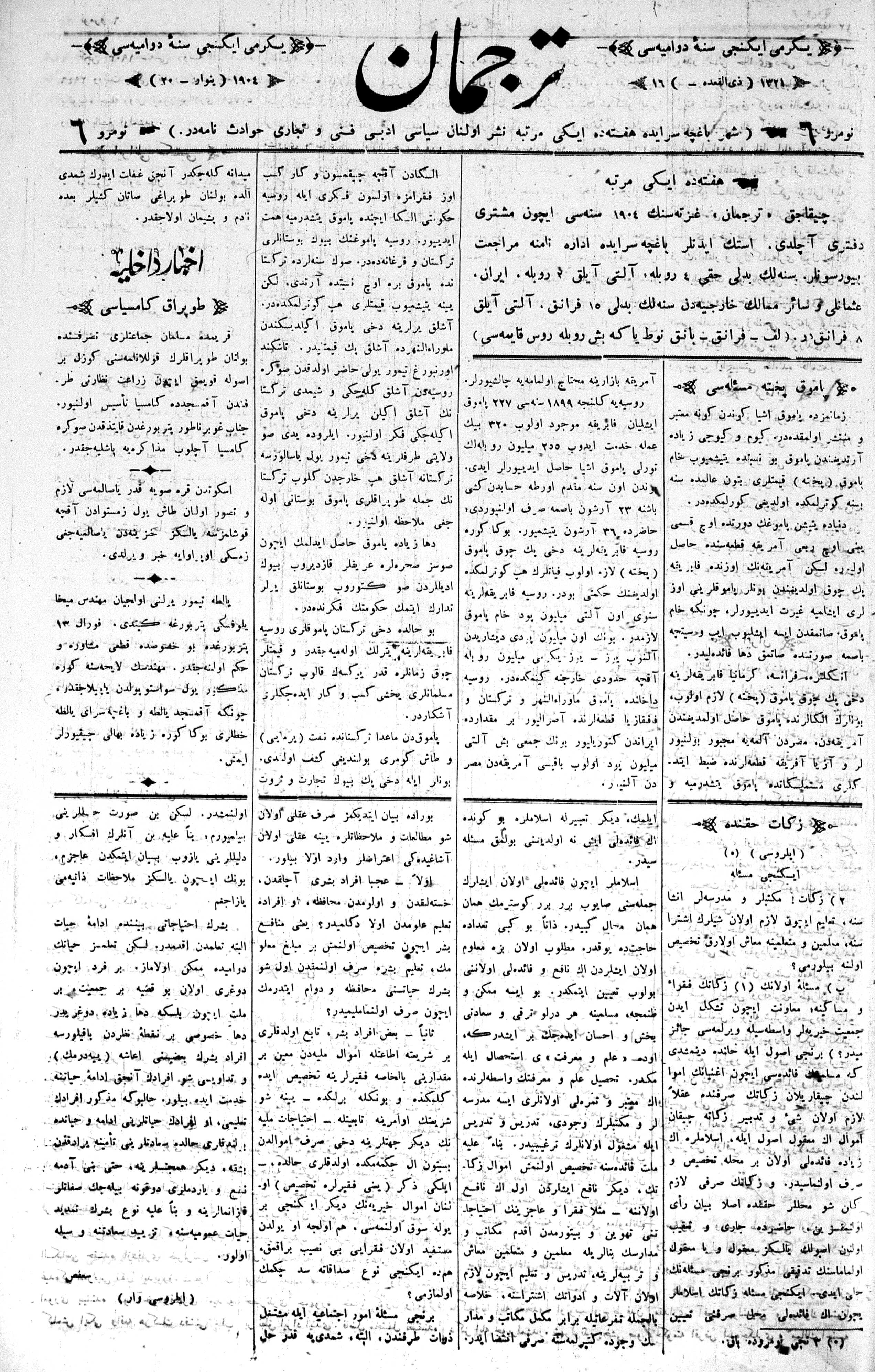 Tercüman, 20 January 1904 Year 22 No 6