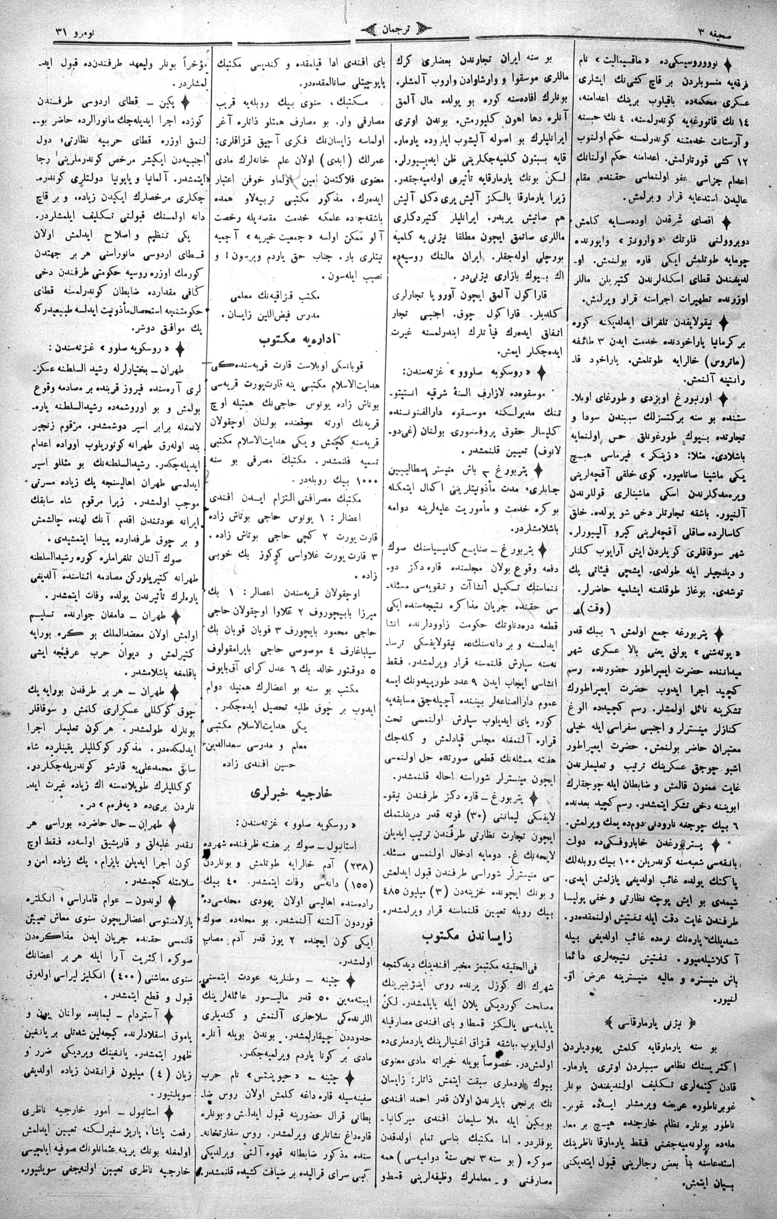 The name of the newspaper changed to Tercüman-ı Ahval-i Zaman in 1905. In 1909, it started to be published under its first name, Tercüman.