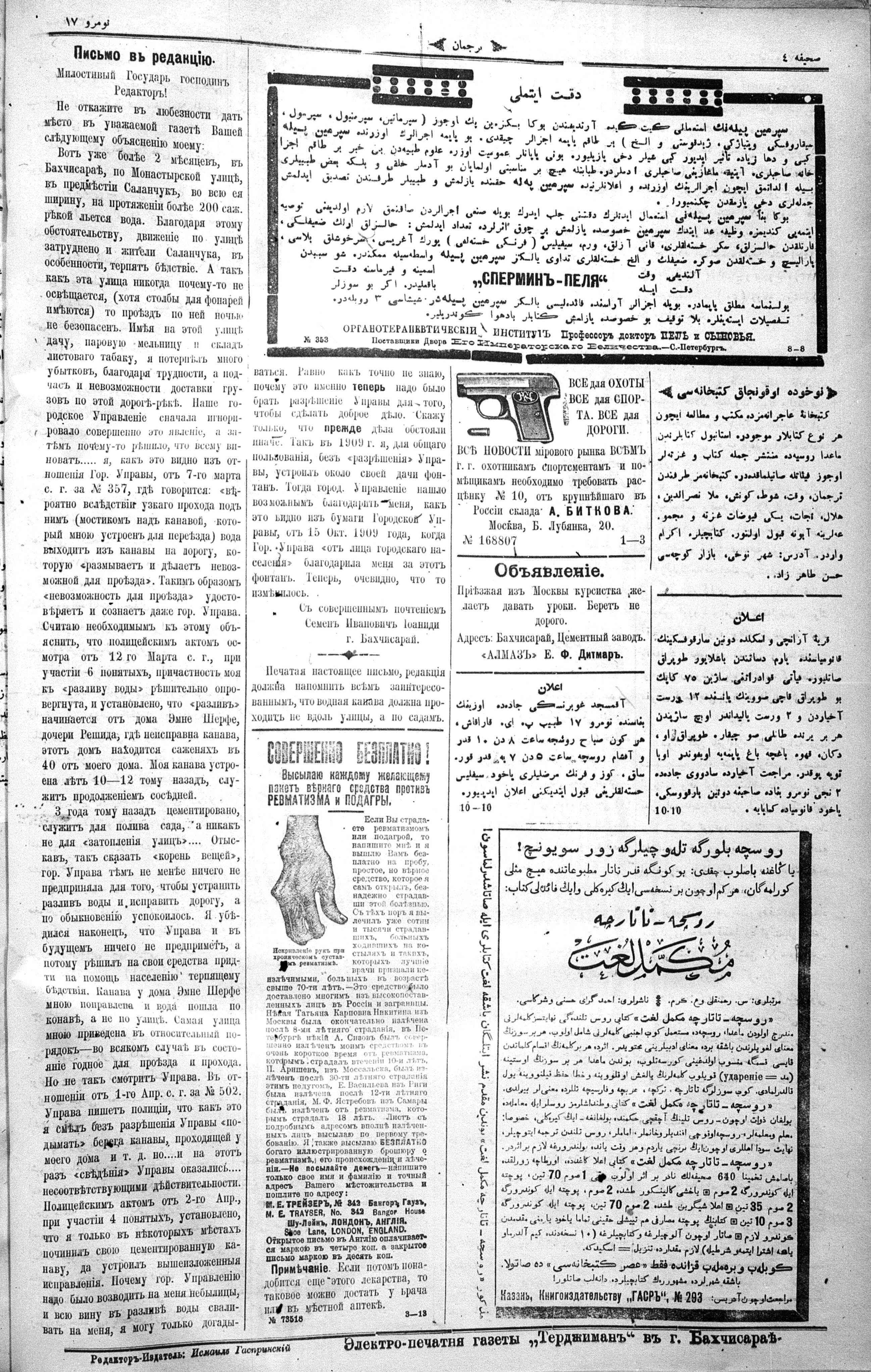 Different spellings of Tercüman: Terdzhiman, Terjuman, Perevodçik and Terjiman.
