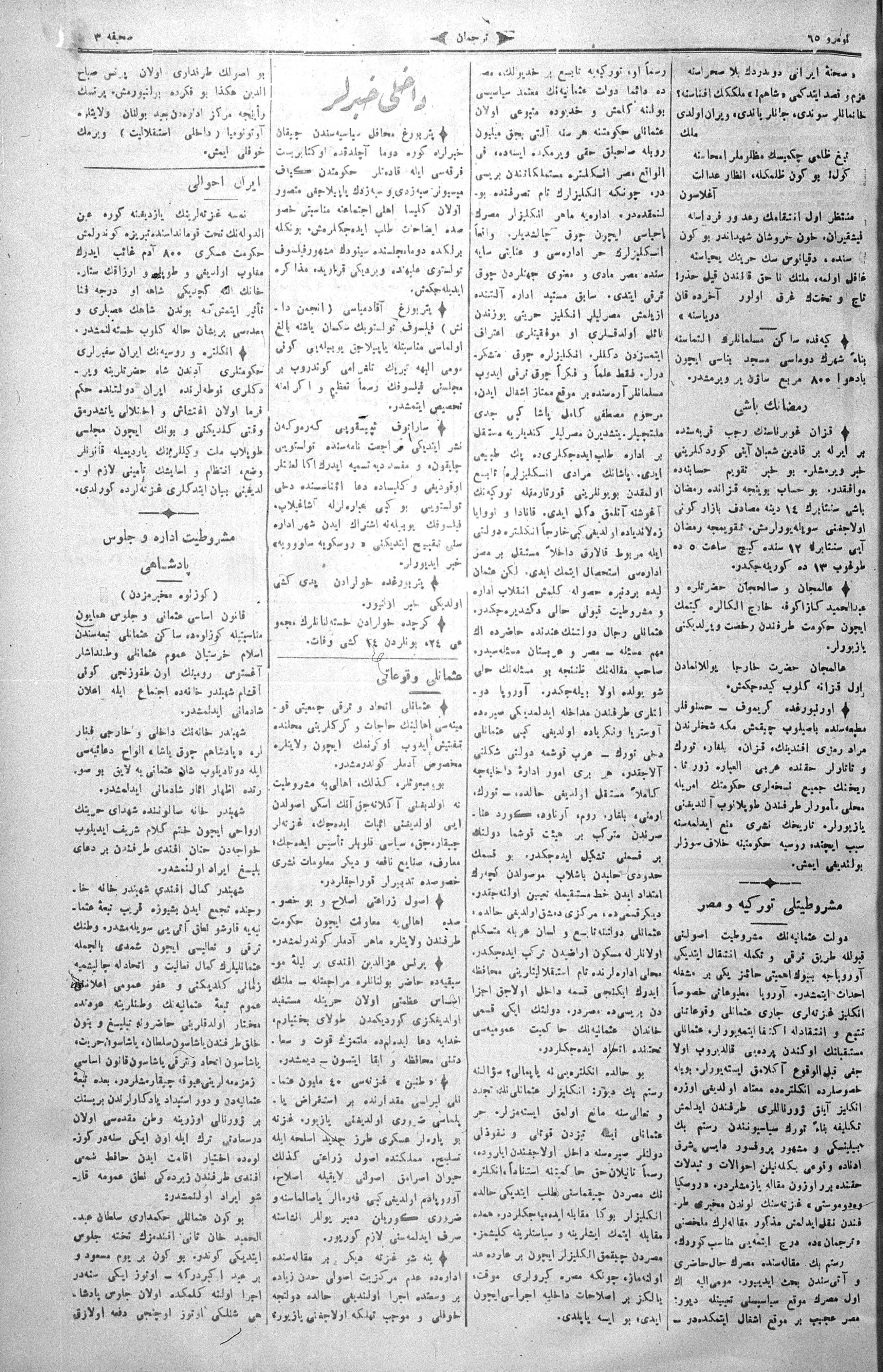 The name of the newspaper changed to Tercüman-ı Ahval-i Zaman in 1905. In 1909, it started to be published under its first name, Tercüman.