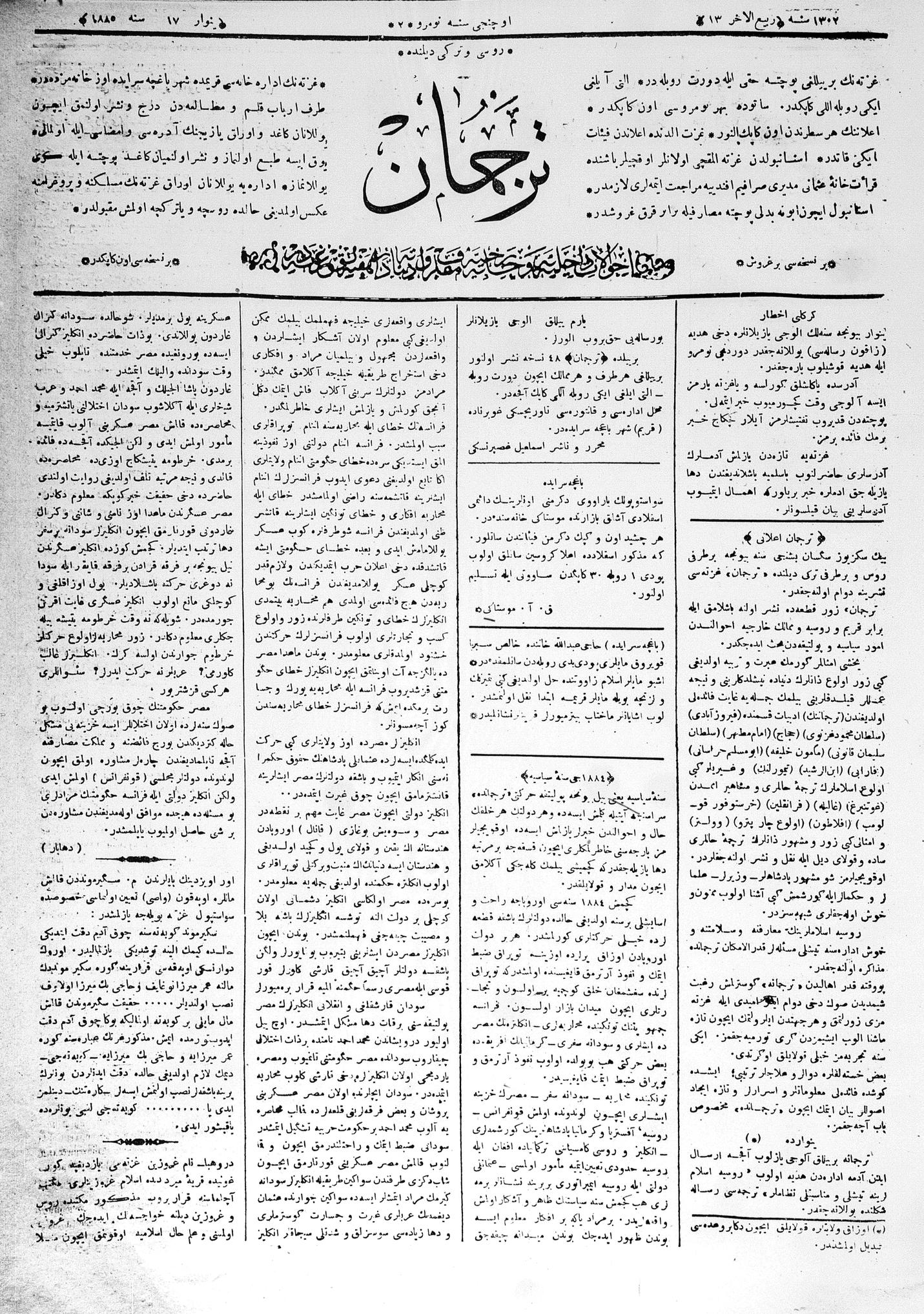 Tercüman, 17 January 1885 Year 3 No 2
