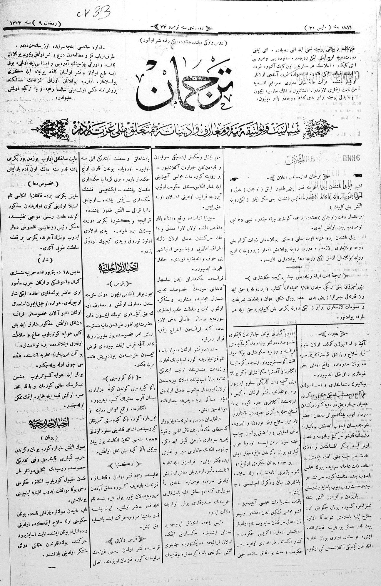 Tercüman, 30 May 1886 Year 4 No 33