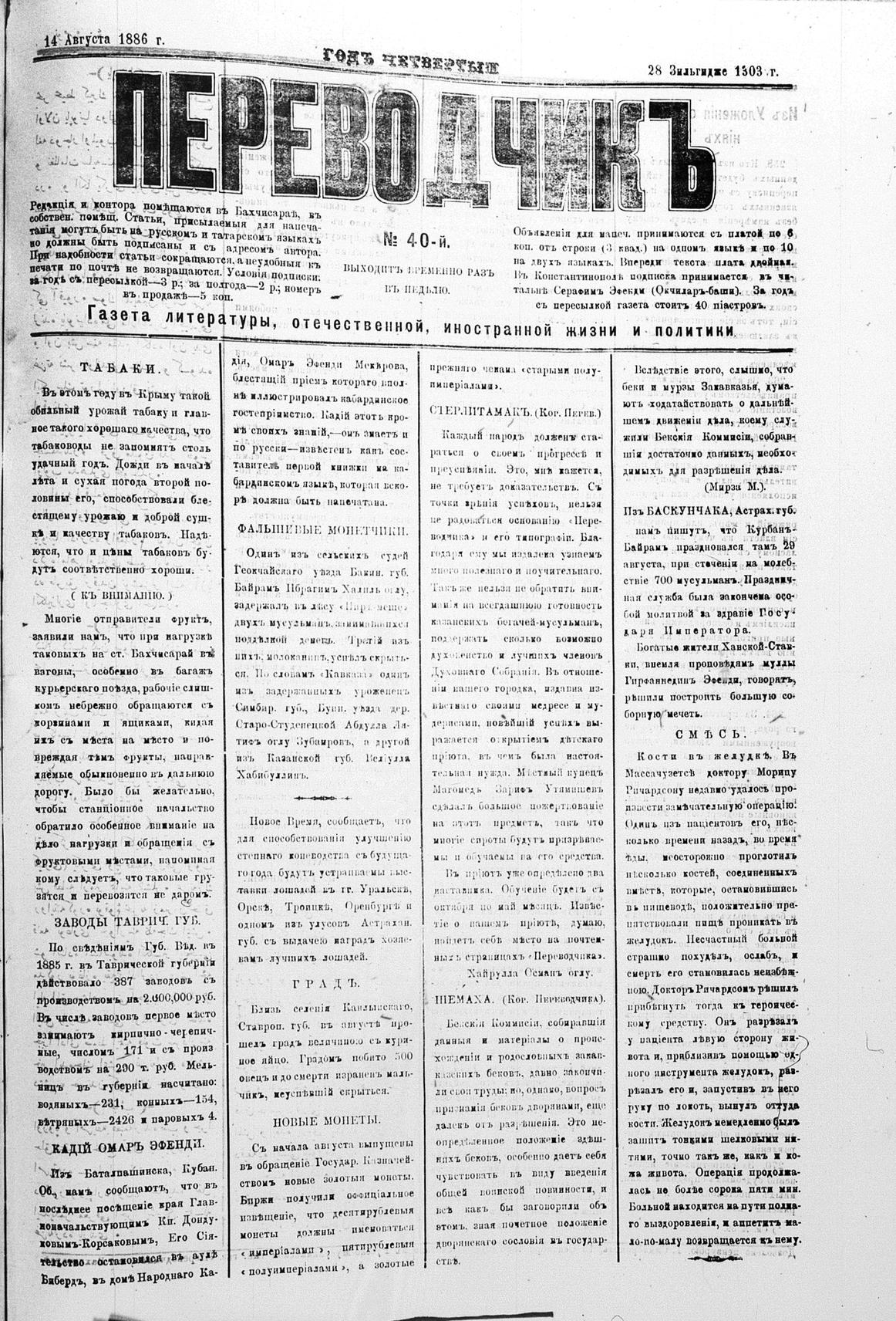 Tercüman, 14 September 1886 Year 4 No 40