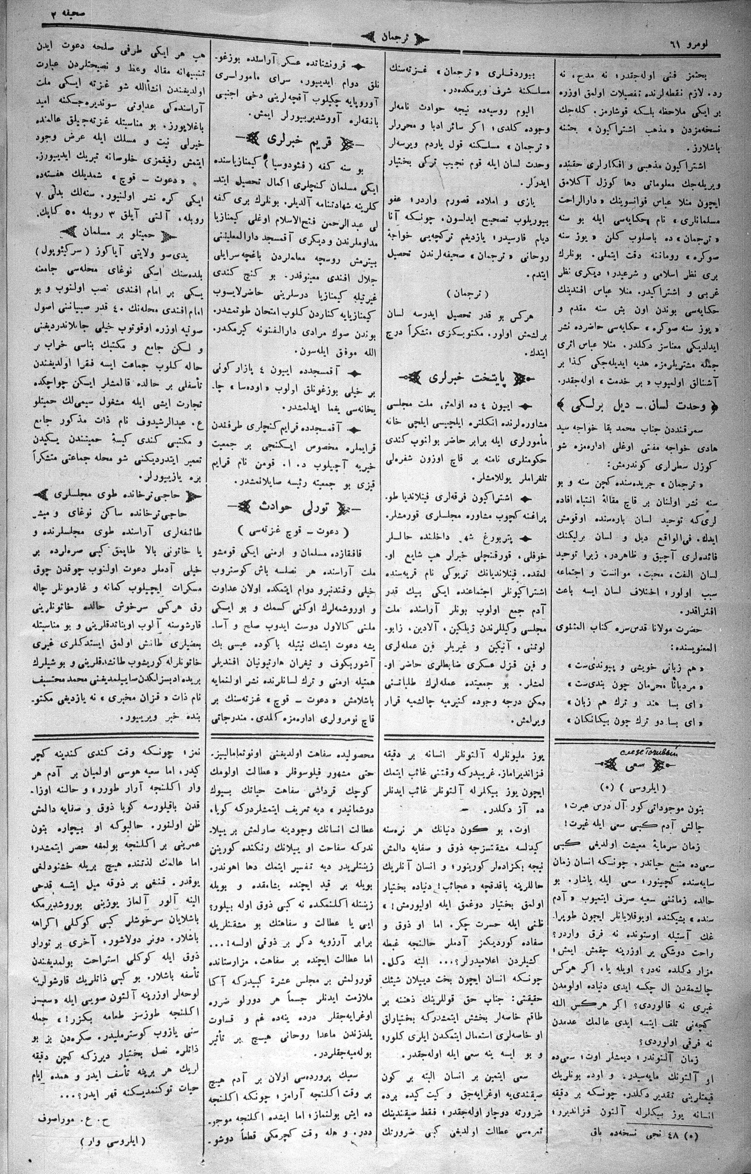 The name of the newspaper changed to Tercüman-ı Ahval-i Zaman in 1905. In 1909, it started to be published under its first name, Tercüman.