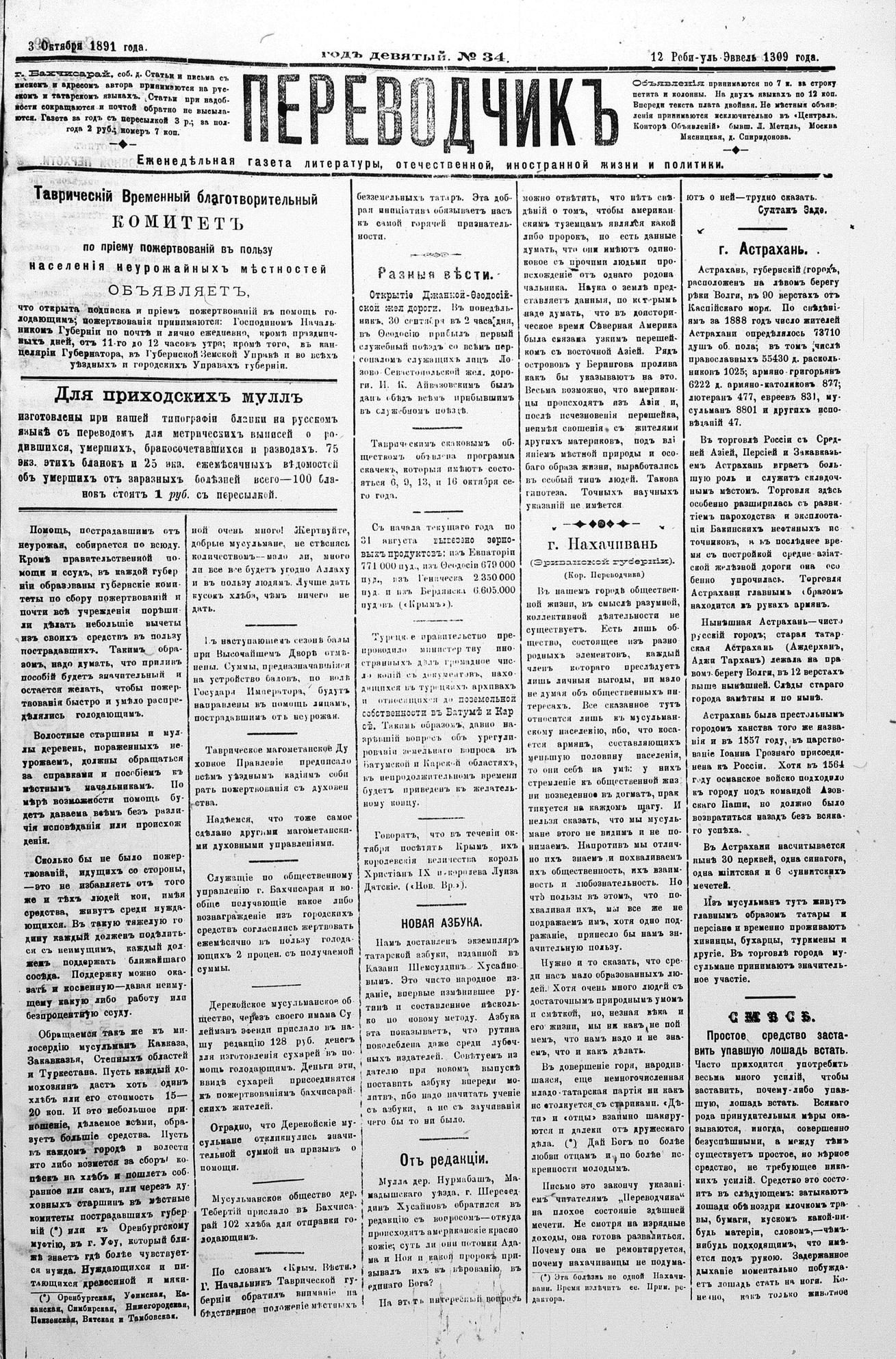 Turkish-Russian newspaper published in Crimea by İsmail Gaspıralı.