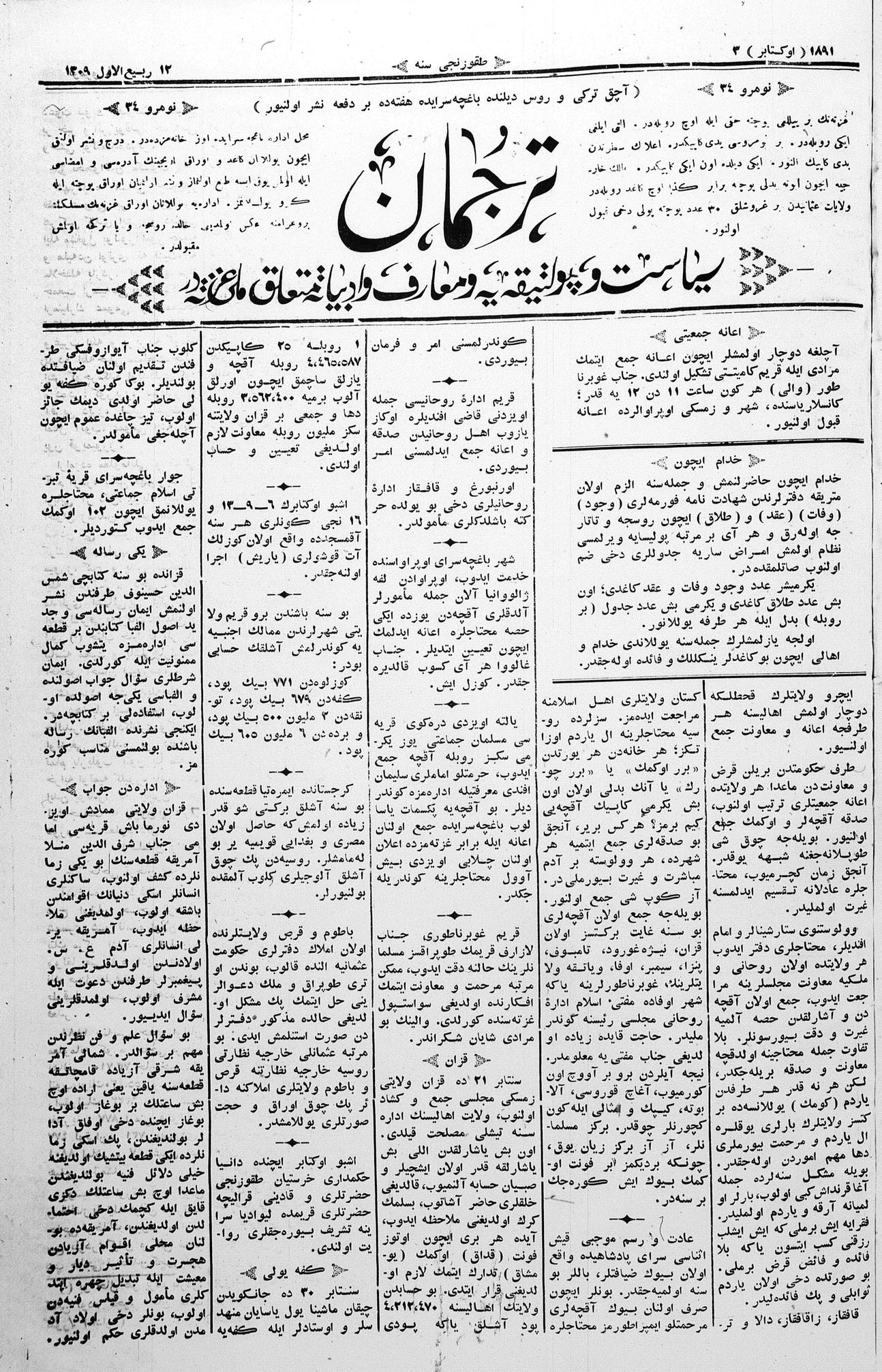 Tercüman, 03 October 1891 Year 9 No 34
