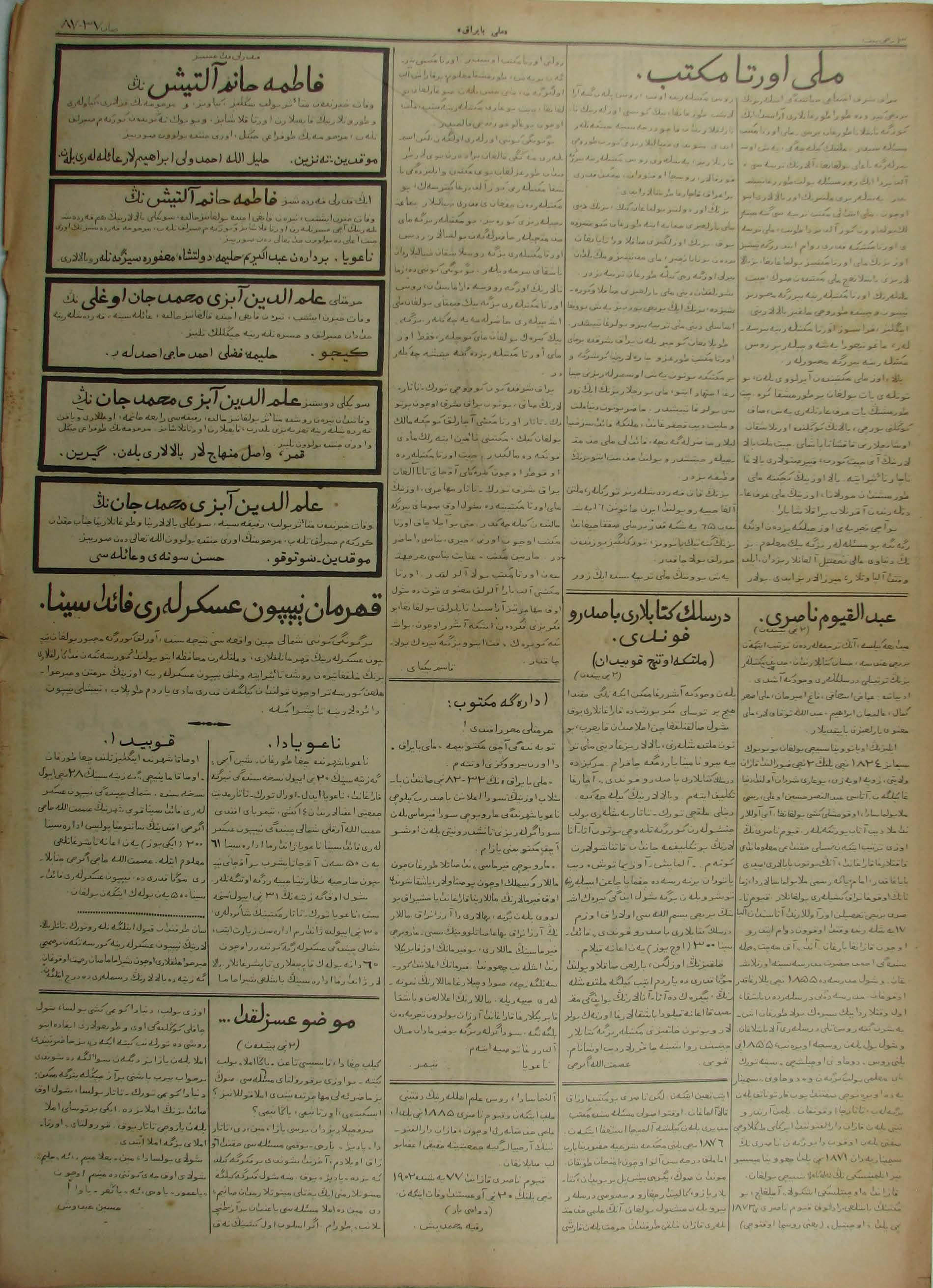 The Milli Bayrak newspaper was written in Tatar with Arabic script.