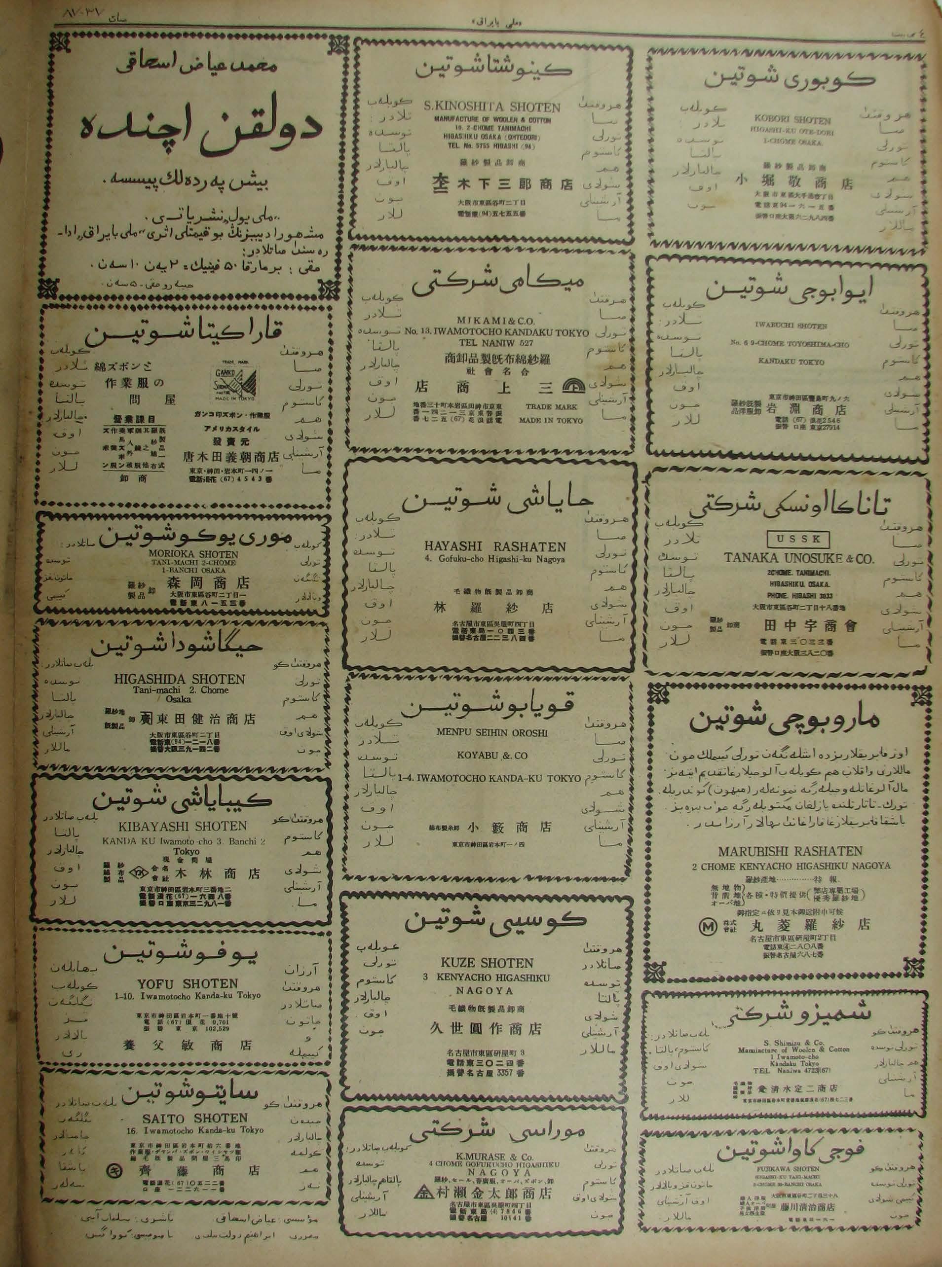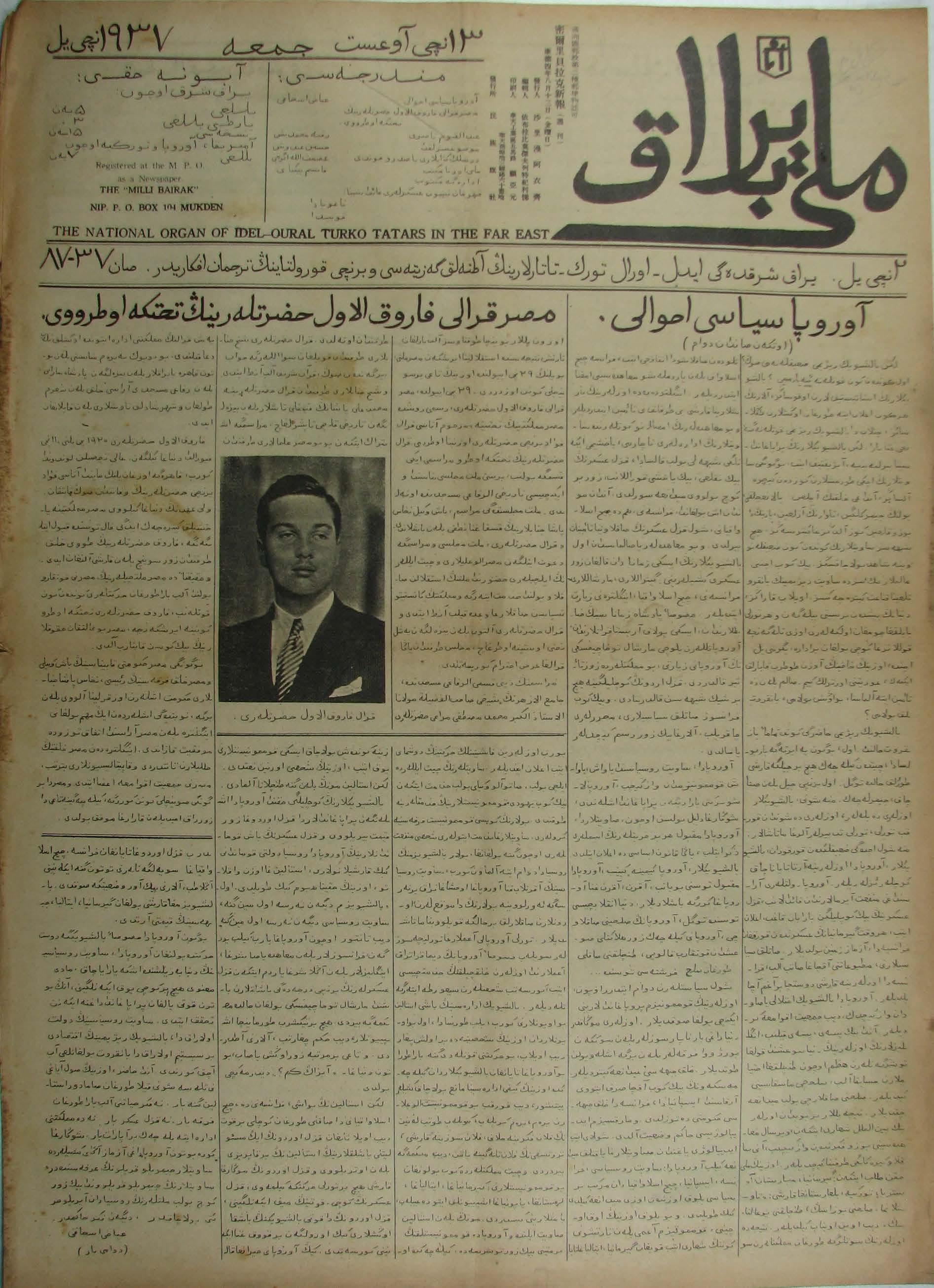 The Milli Bayrak newspaper was printed in Mukden.