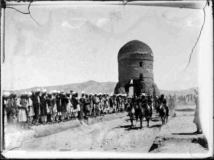 Herat'ta Kabil Büyükelçisi Fahreddin Paşa'yı karşılamaya gelen Afganlar ve hükümet memurları
