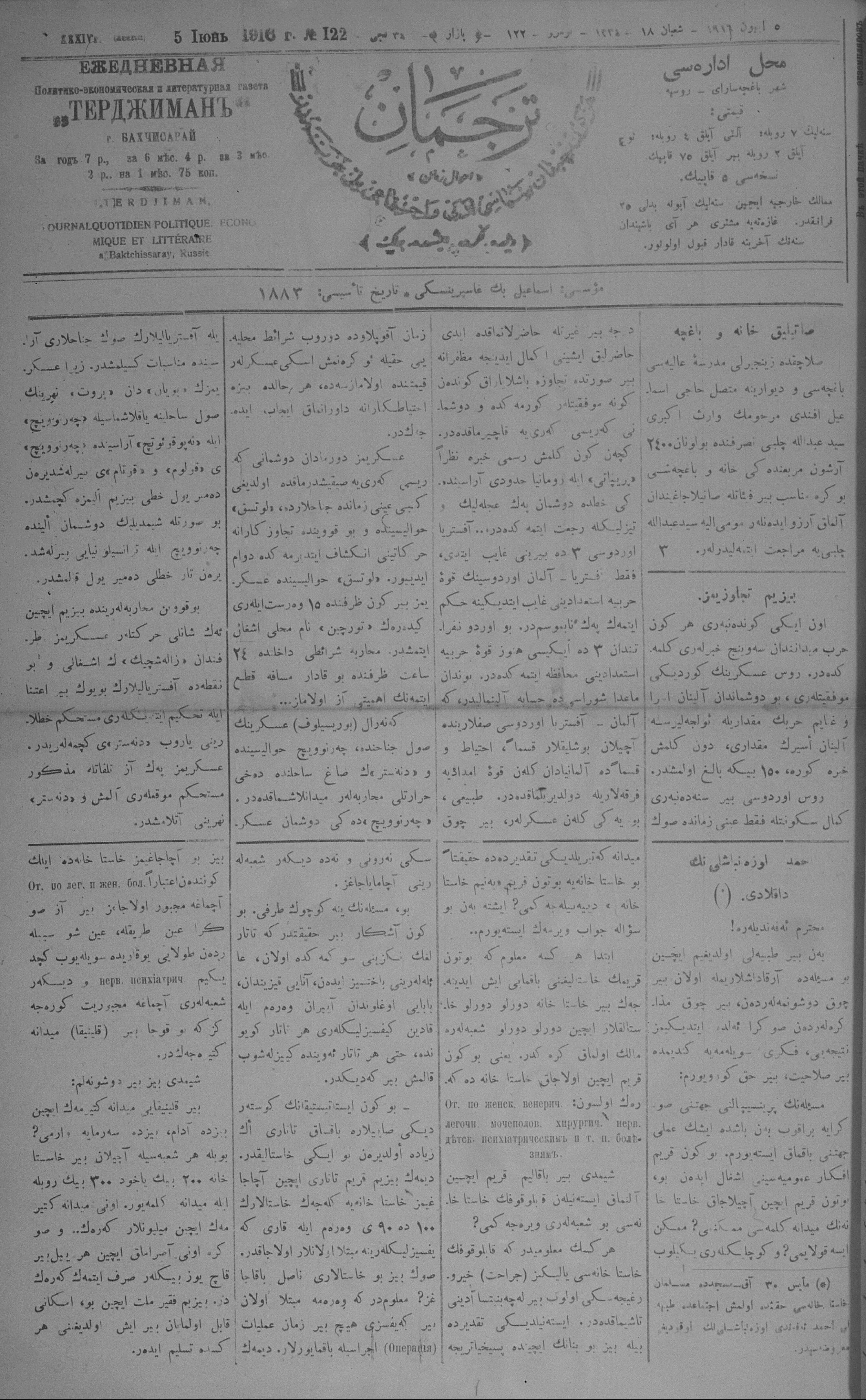 Tercüman, 05 June 1916 Year 34 No 122
