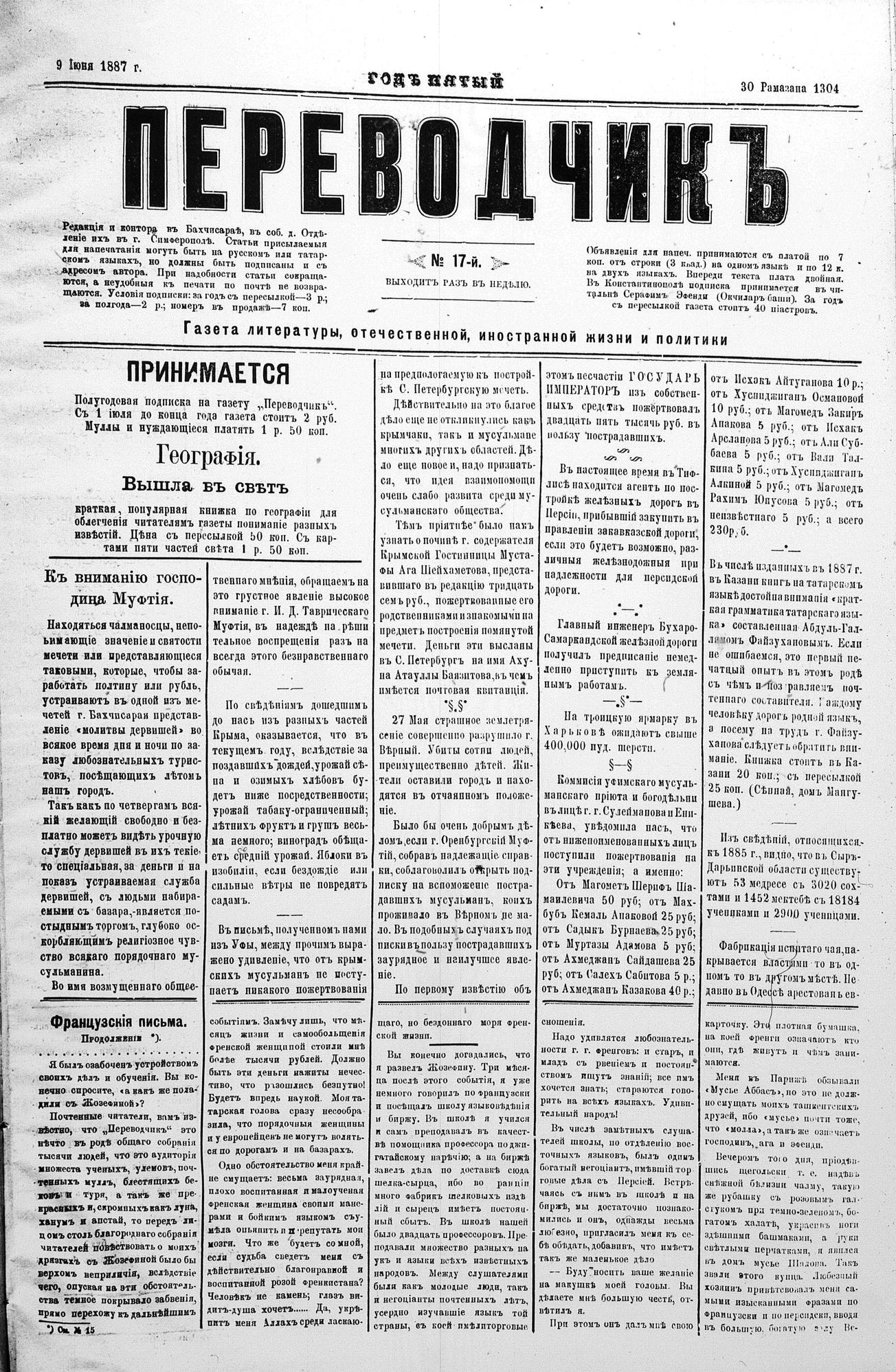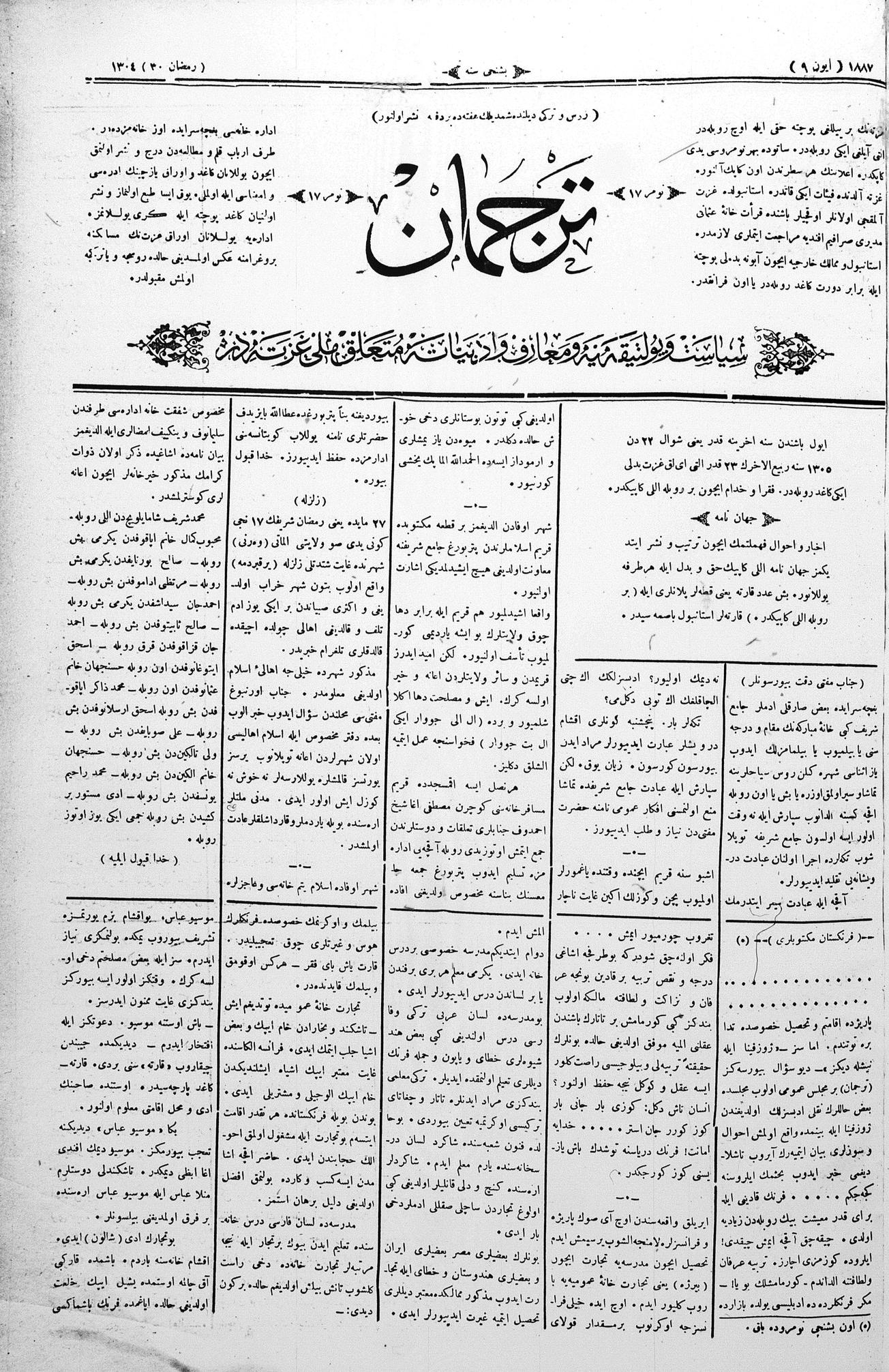 Tercüman, 09 June 1887 Year 5 No 17