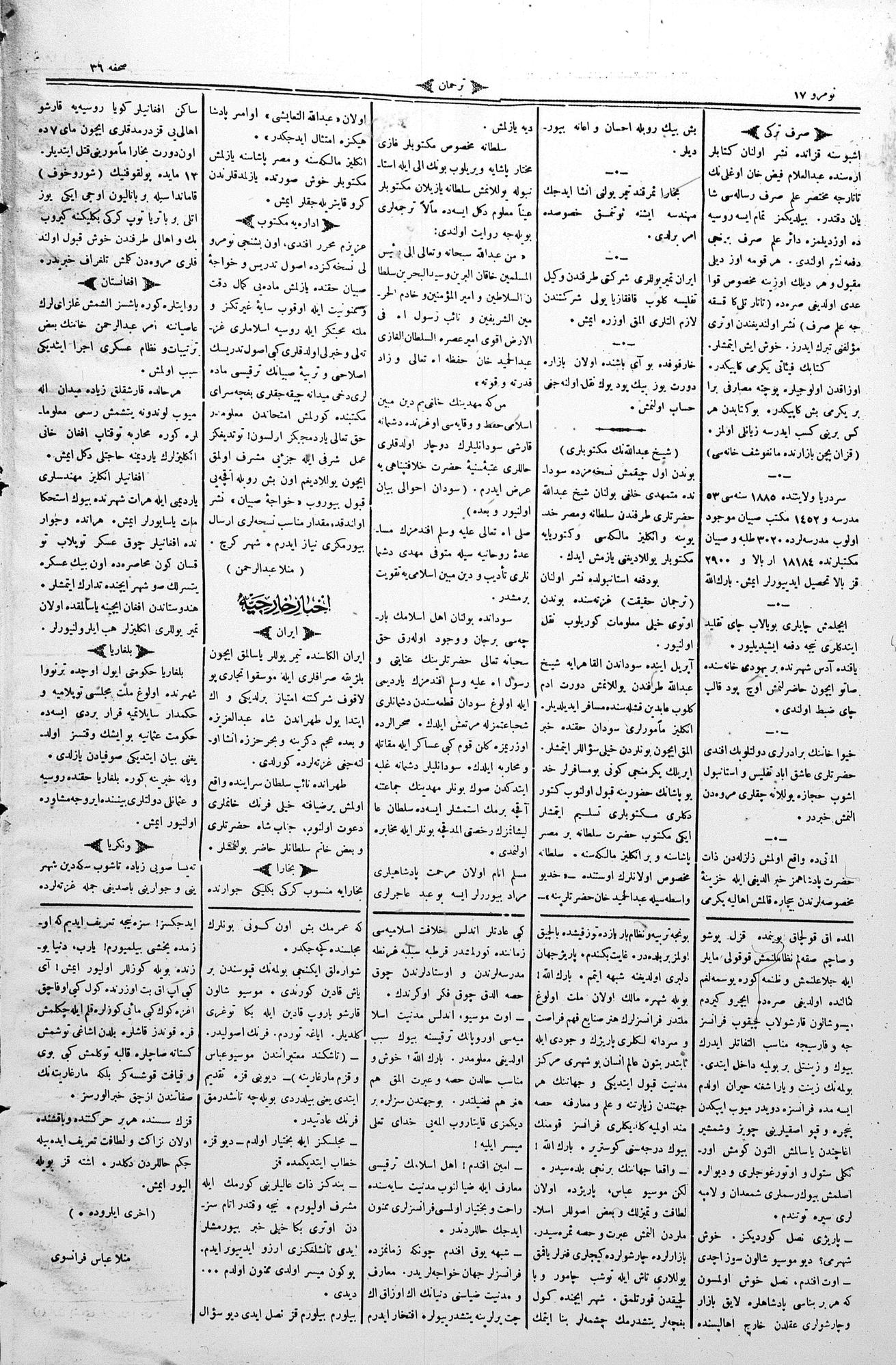 The name of the newspaper changed to Tercüman-ı Ahval-i Zaman in 1905. In 1909, it started to be published under its first name, Tercüman.