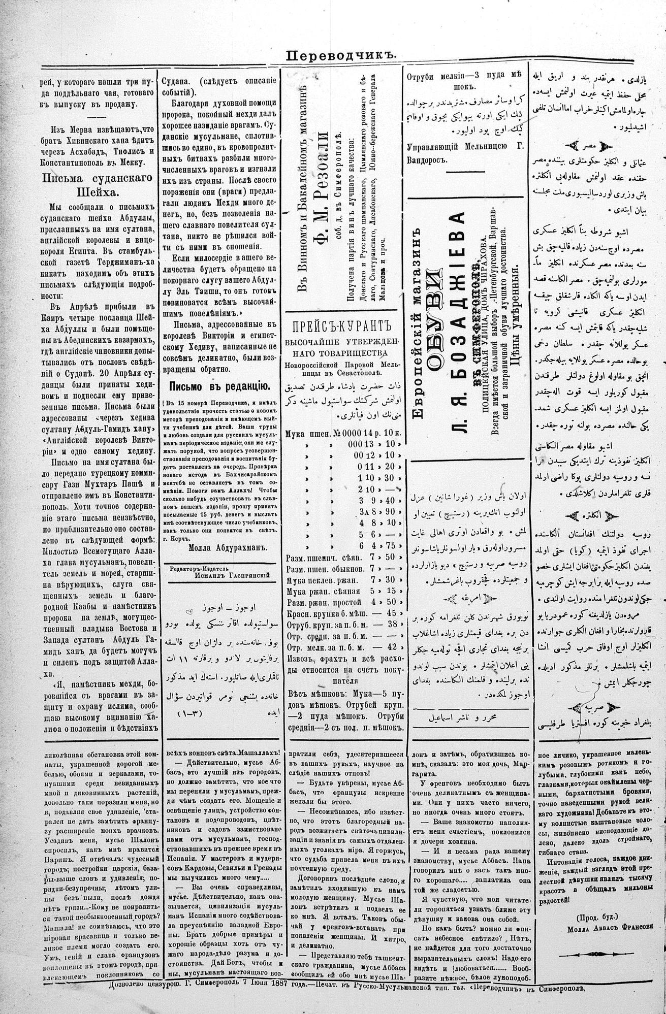 Turkish-Russian newspaper published in Crimea by İsmail Gaspıralı.